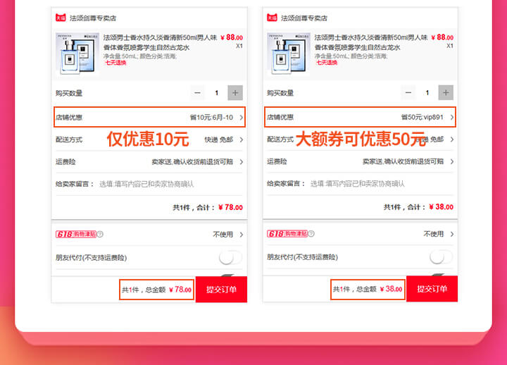 告诉你一个小秘密,淘宝的订单确认页面一般会自动叠加最大优惠,试试就知道啦。
