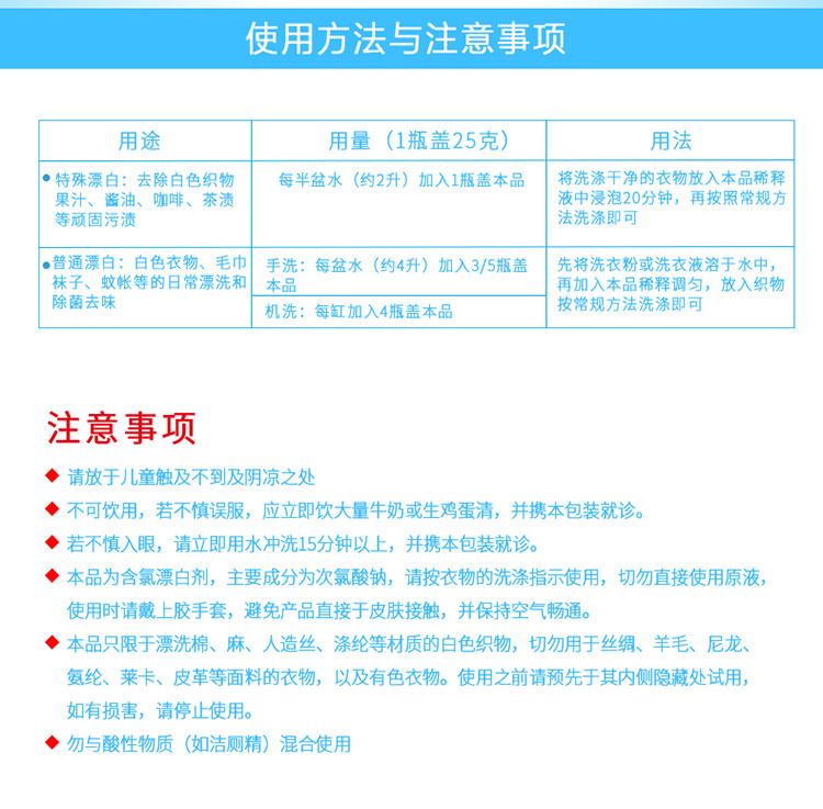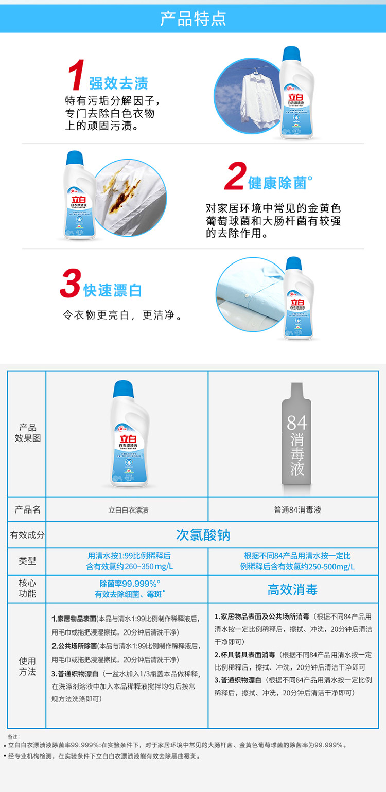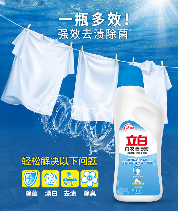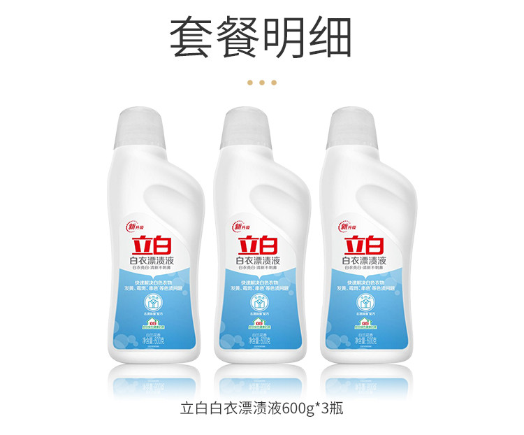 立白 除菌漂渍液漂白水3瓶装去渍不伤衣去黄增白衣服染色去除剂