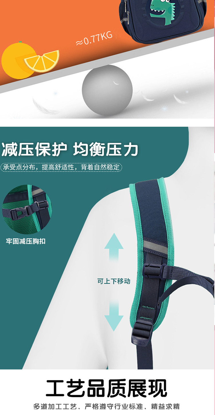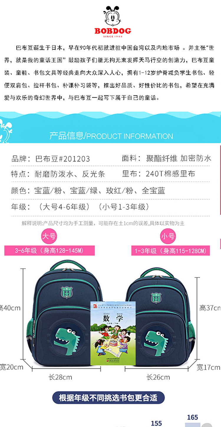 BOBDOG巴布豆 爆款】轻便护脊减负书包小学生男童1-3年级小学生儿童书包37\40cm
