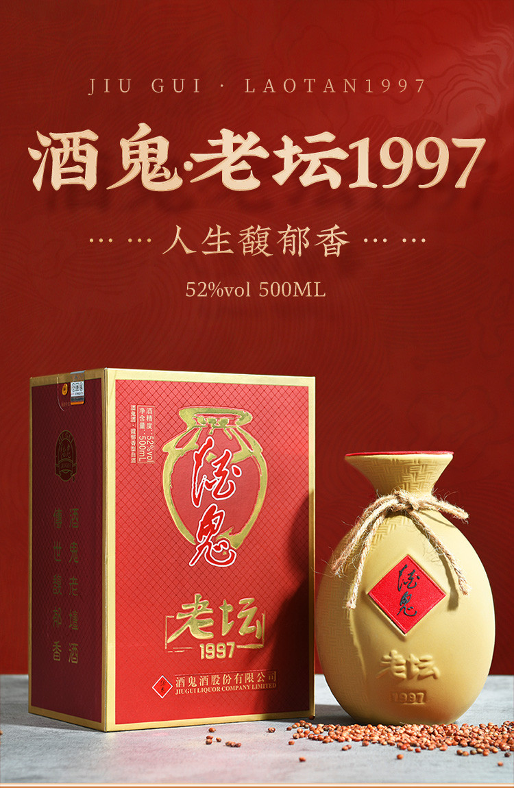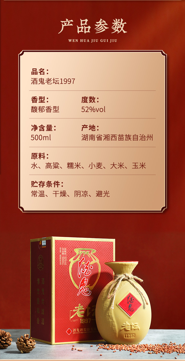 酒鬼 老坛1997馥郁香酒鬼酒52度500ml*6瓶整箱装白酒喜酒送礼