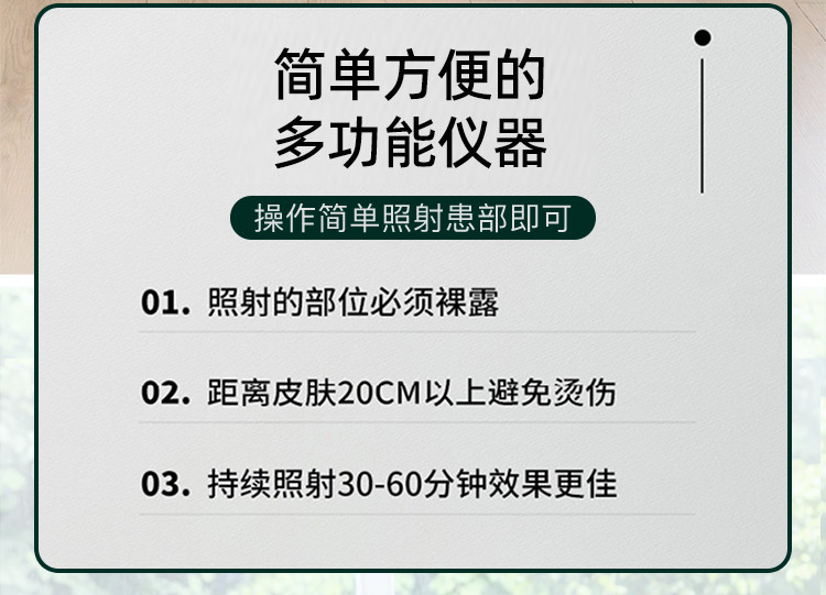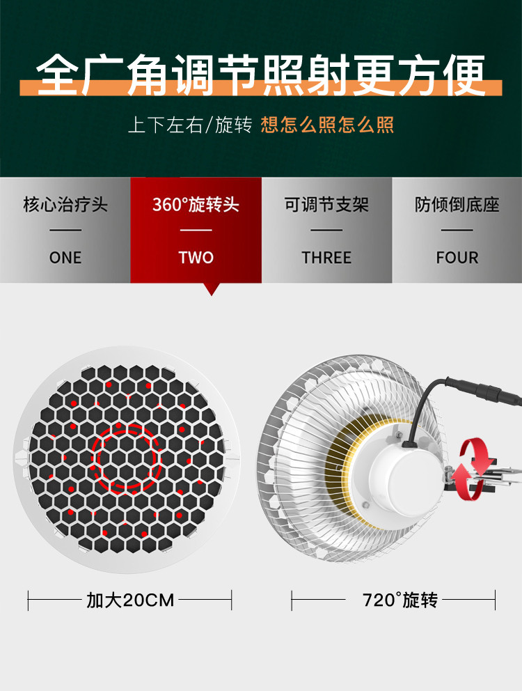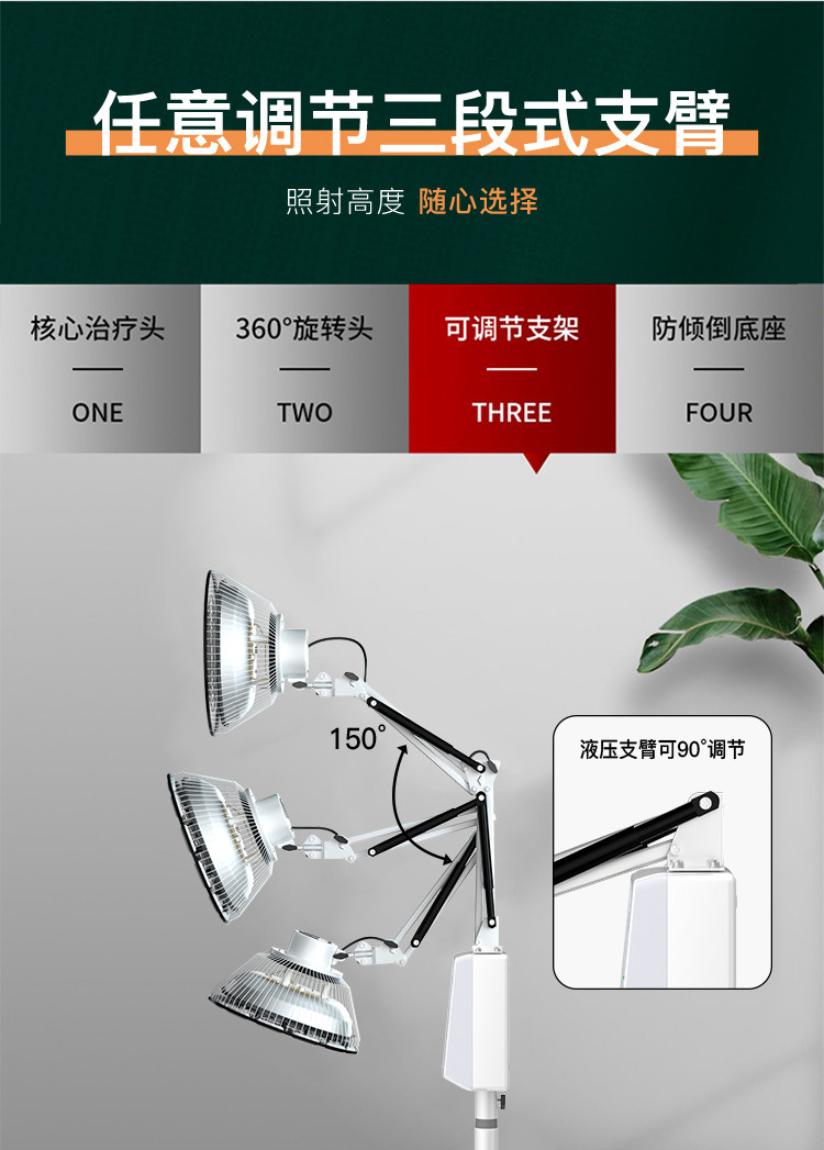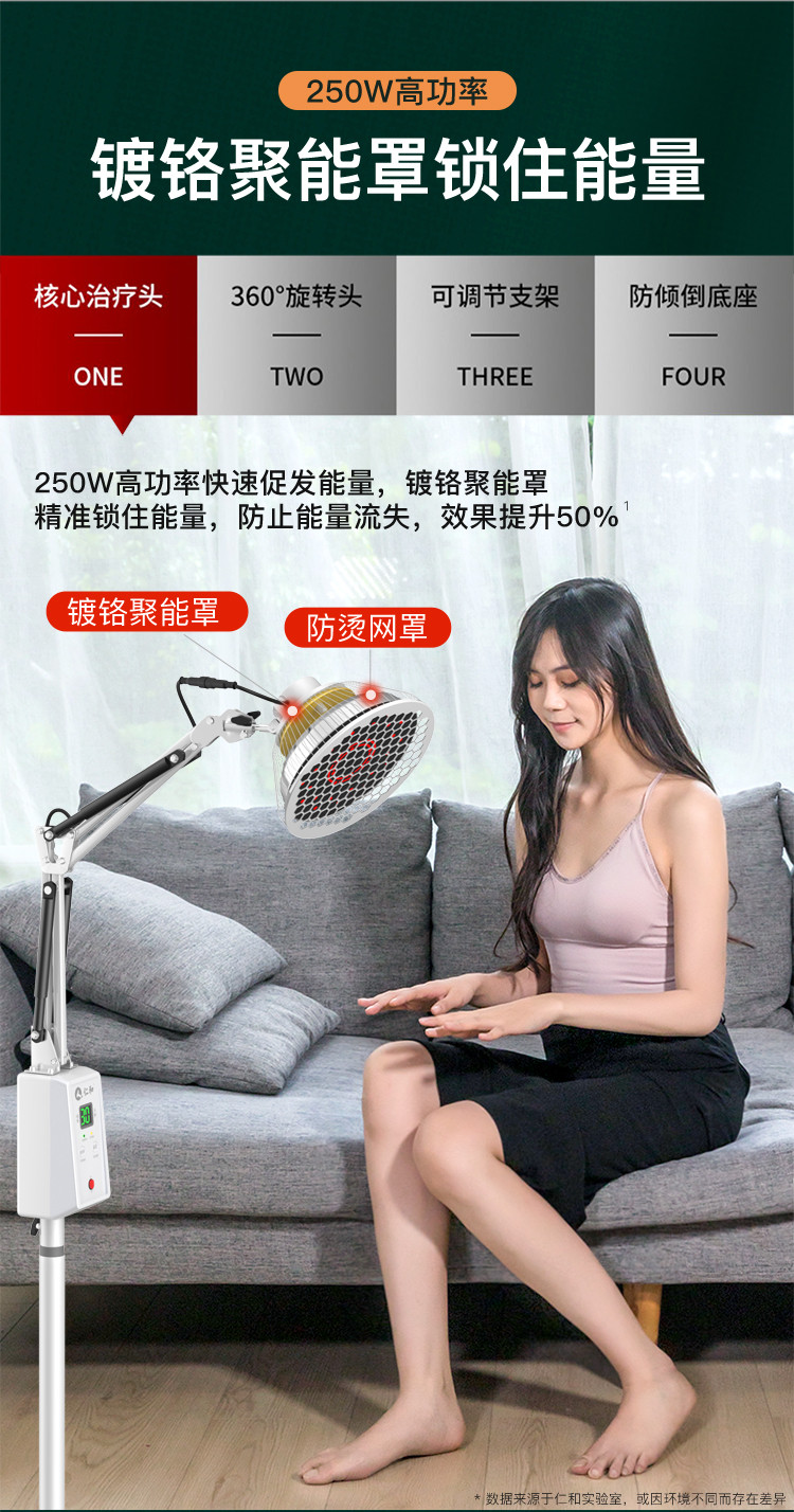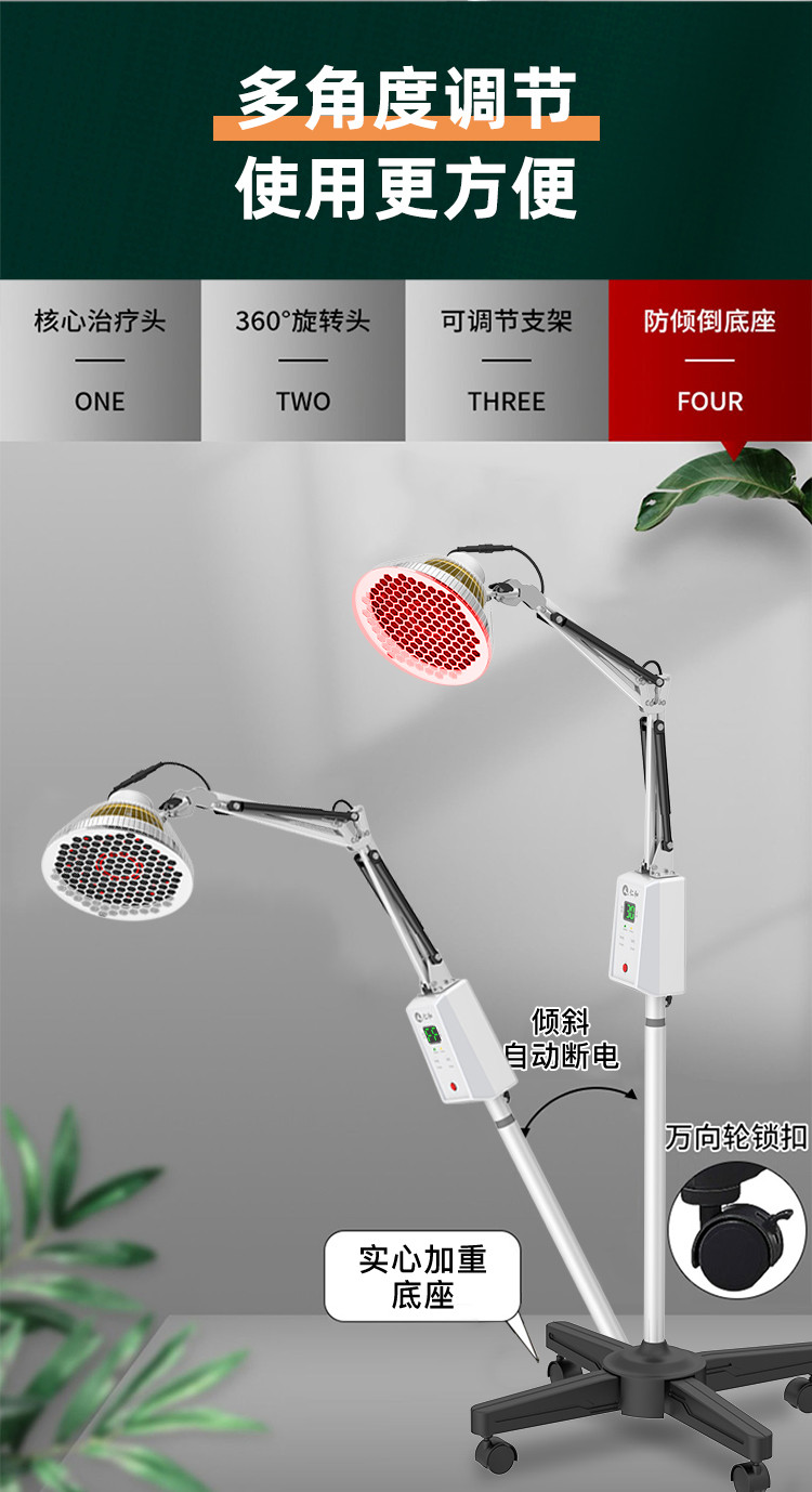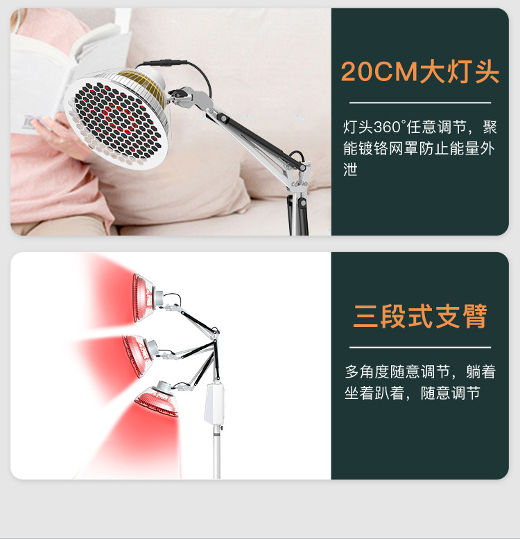 用了一段时间回来评价,很满意,这个灯设计很好,底盘很稳,给老人烤腰用的,一个人就可以操作,灯头红外线的,烤起来会发红光。客服非常耐心,对理疗方法解释的很清楚。
