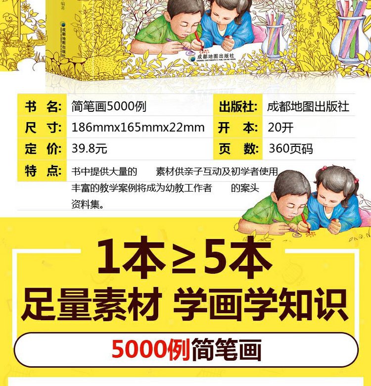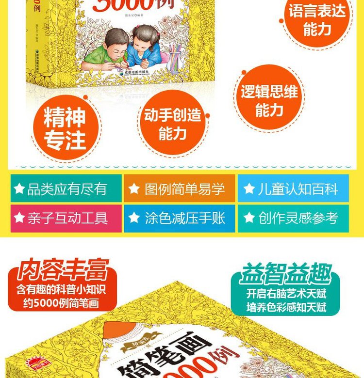 恩诺 儿童简笔画5000例3-6-9岁宝宝涂色画画书美术教材幼儿绘画启蒙书