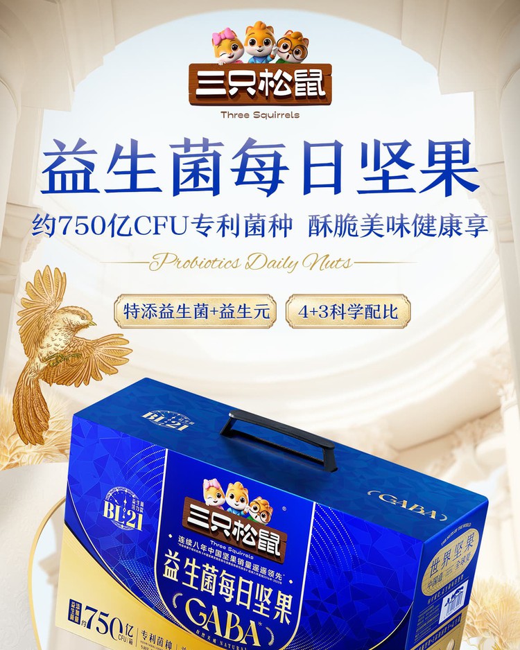 三只松鼠 益生菌每日坚果750g/30包干果休闲零食独立小包