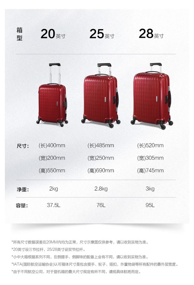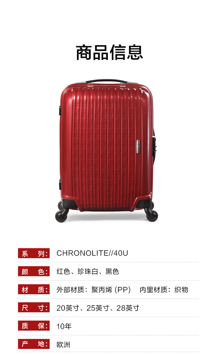 新秀丽 【婚嫁款】大容量轻韧耐磨拉杆箱登机旅行箱密码行李箱男女40U