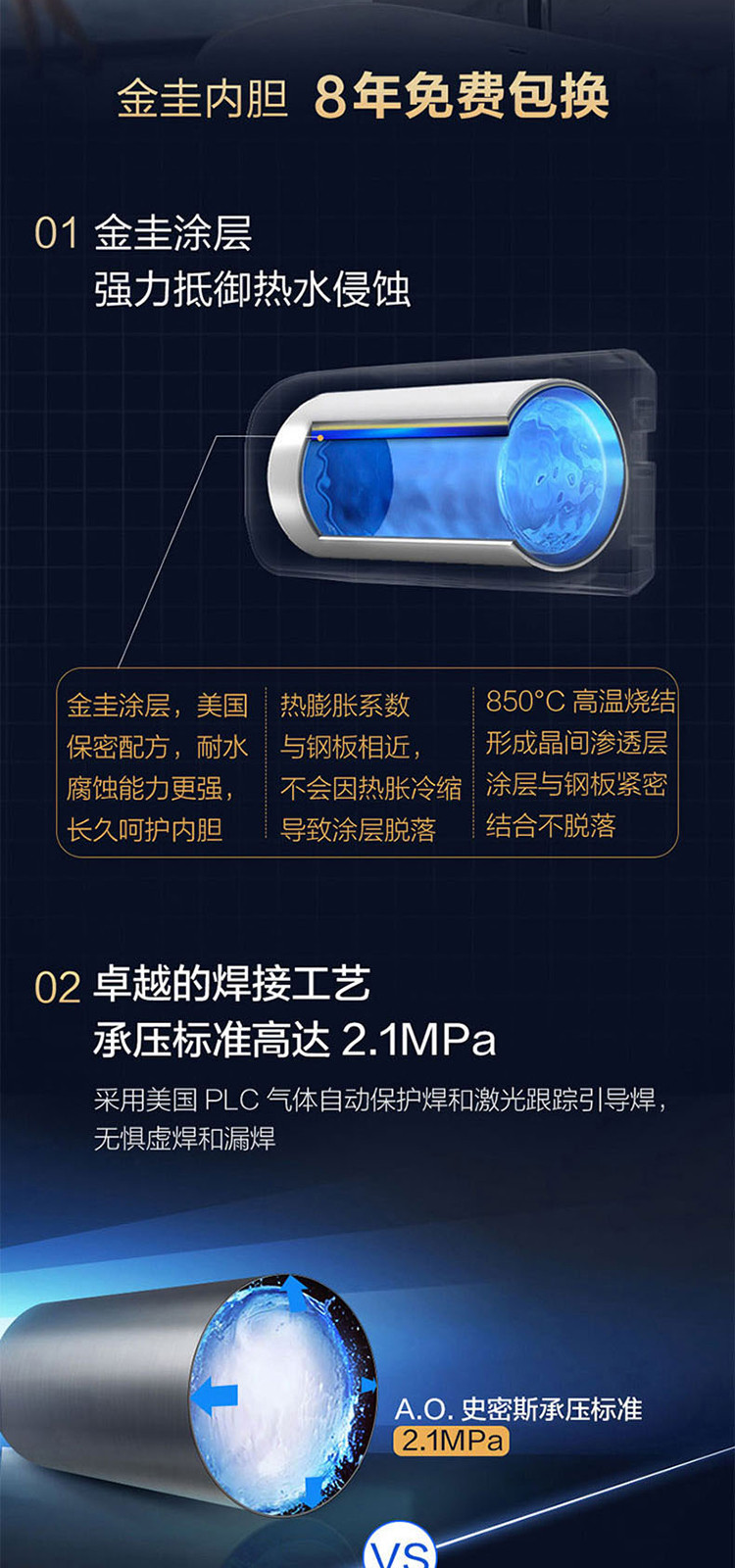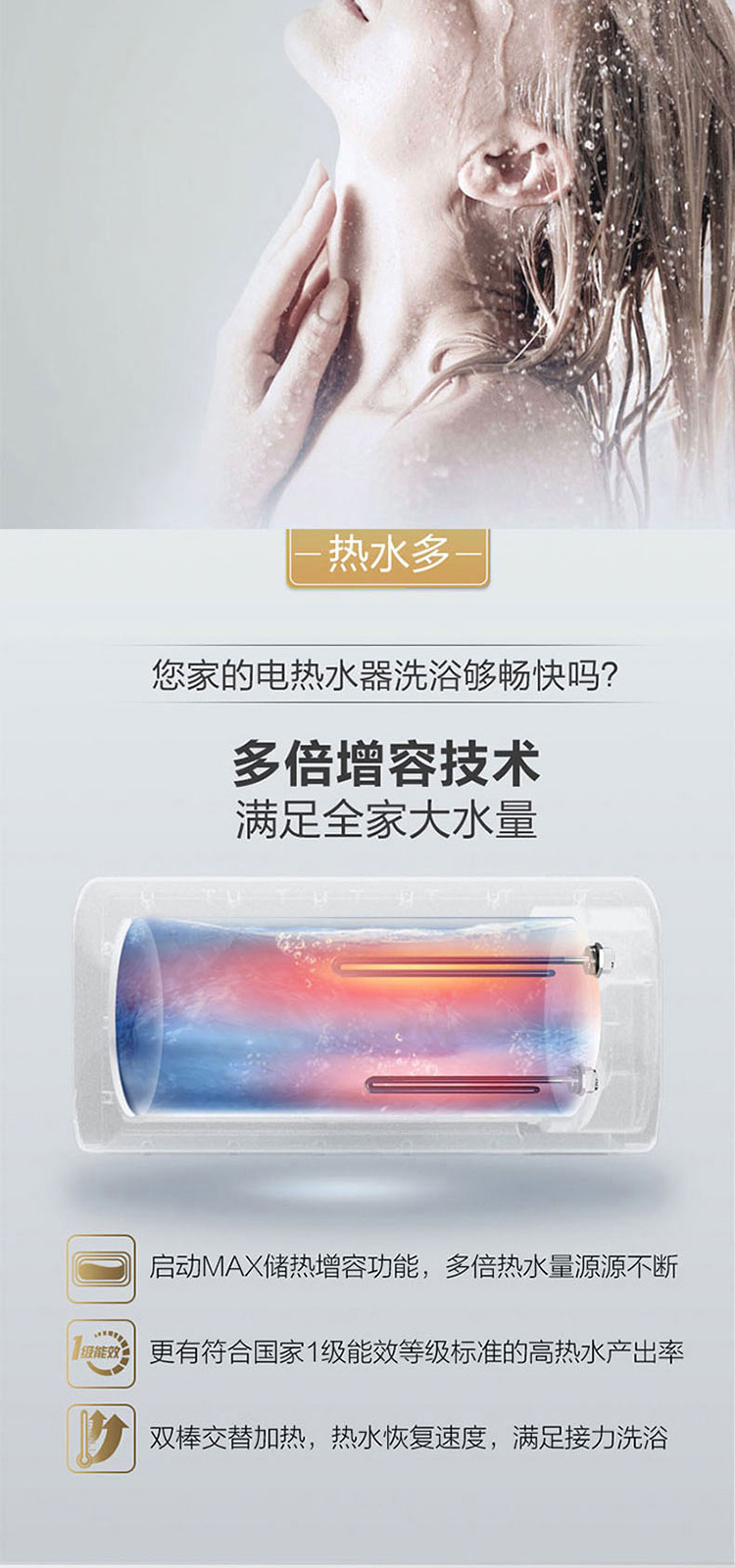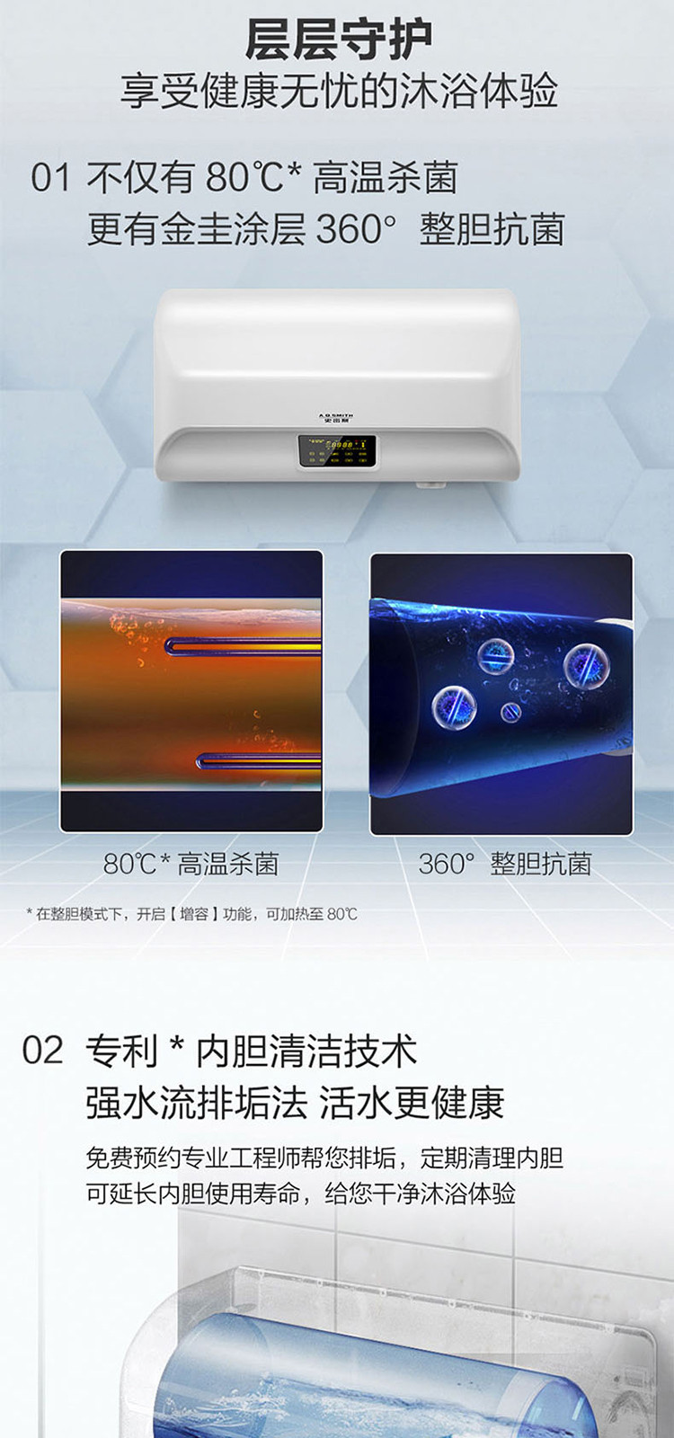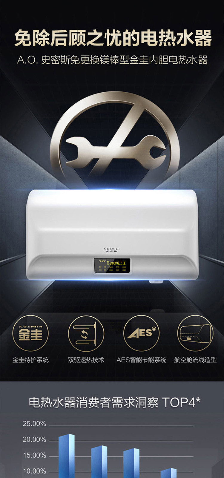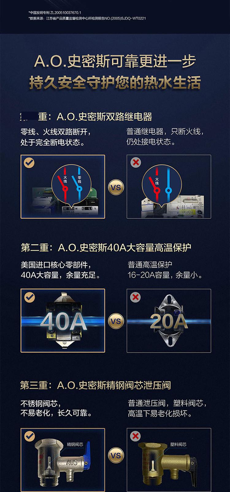 A.O.SMITH 史密斯电热水器家用洗澡60升80升EDX 支持半隐藏安装 遥控