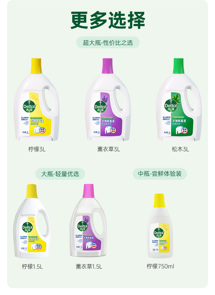 这款清洁消毒产品气味清新淡雅,不刺鼻,温和不伤织物,能够有效去除衣物异味和汗味,具有良好的消毒效果,让人穿着安心。此外,产品量大耐用,包装结实,是许多家庭的常备之选。