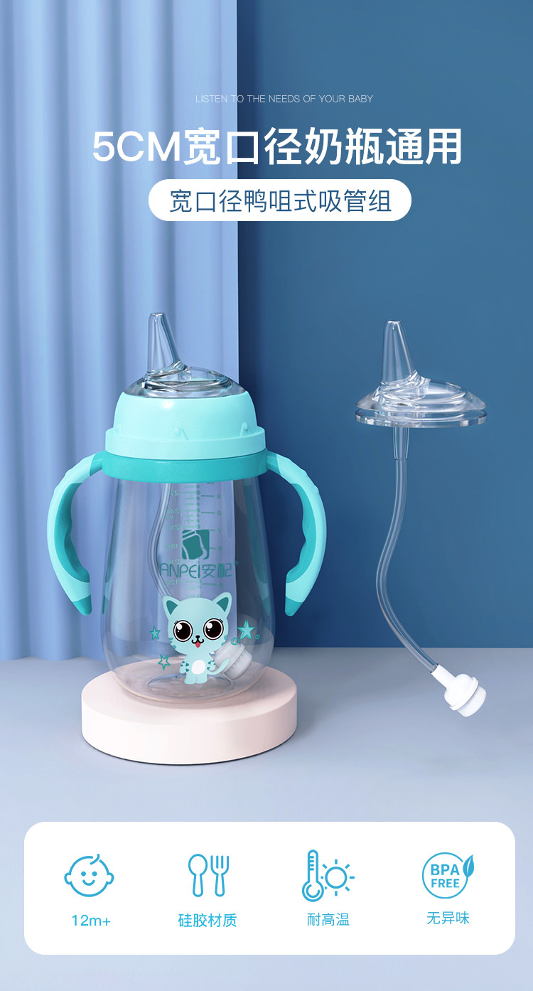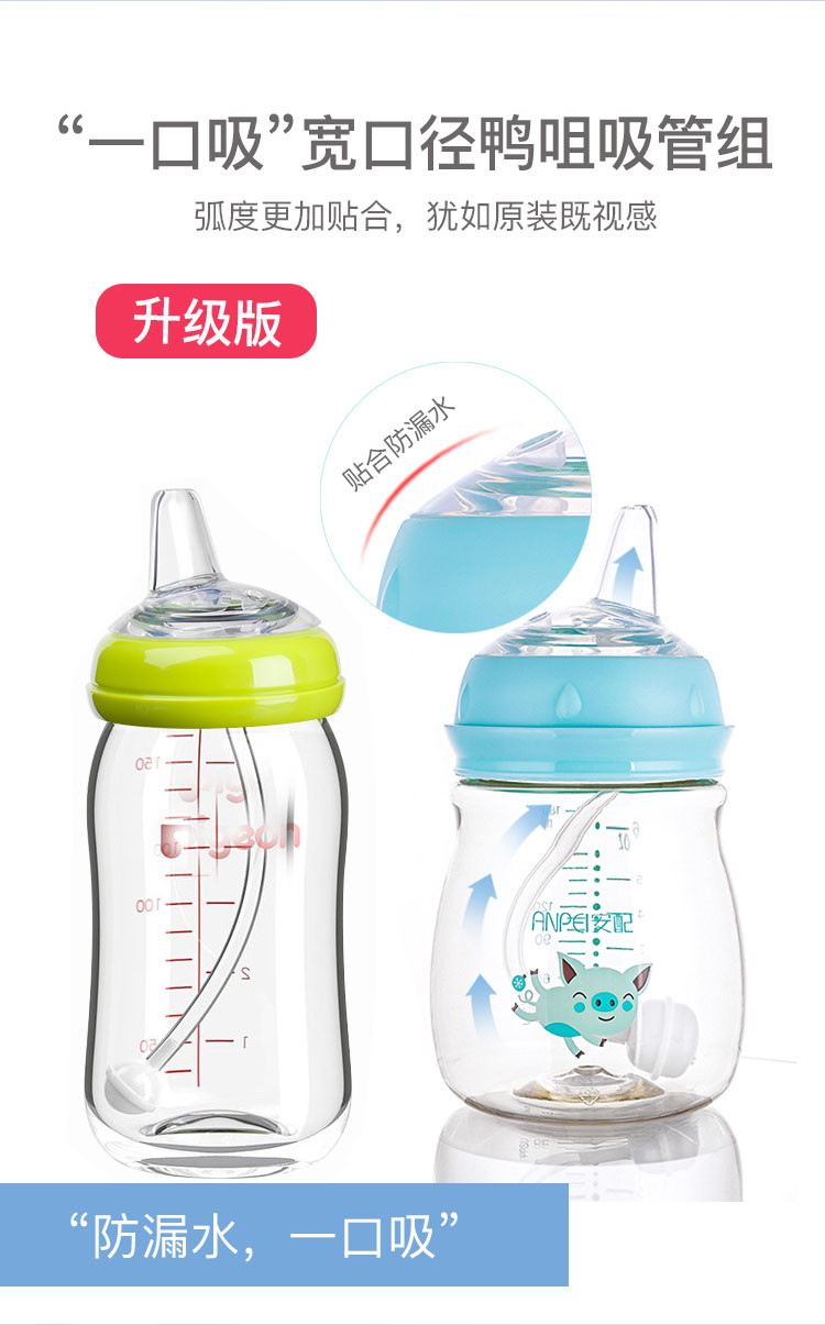 安配 一体吸鸭嘴手柄适配贝亲奶瓶鸭嘴5.0奶瓶贝亲二代鸭嘴配吸管刷