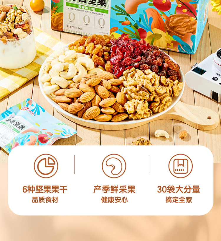 良品铺子 每日坚果混合综合果仁750g坚果礼盒营养补给送礼盒装约30小包