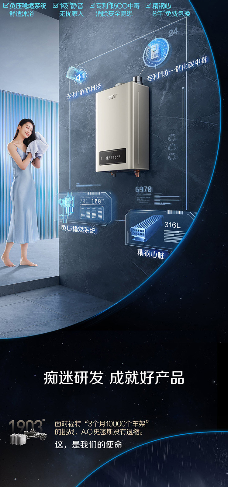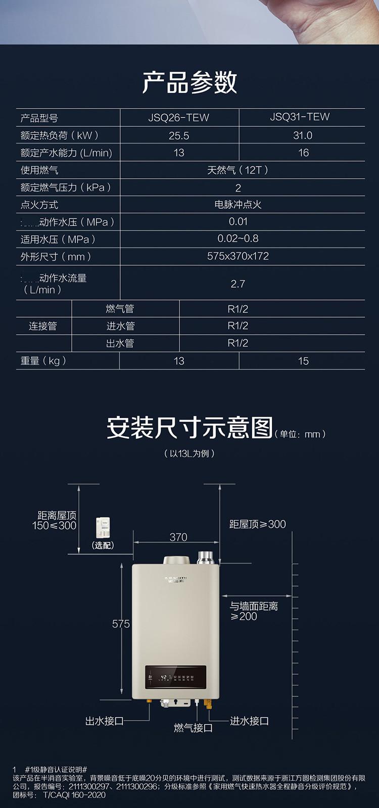 A.O.SMITH 史密斯13升16升燃气热水器家用洗澡天然气TEW 专利1级静音