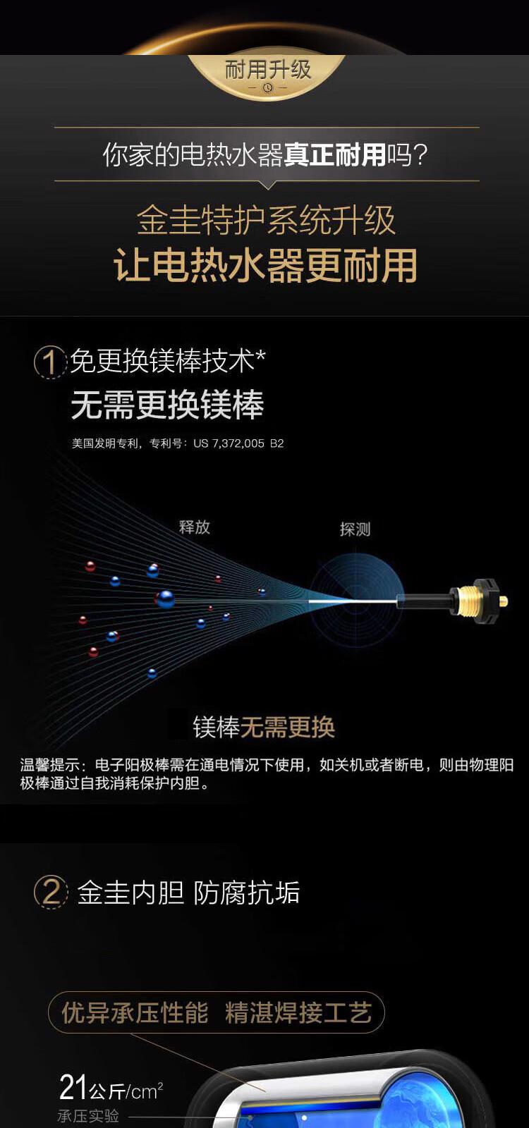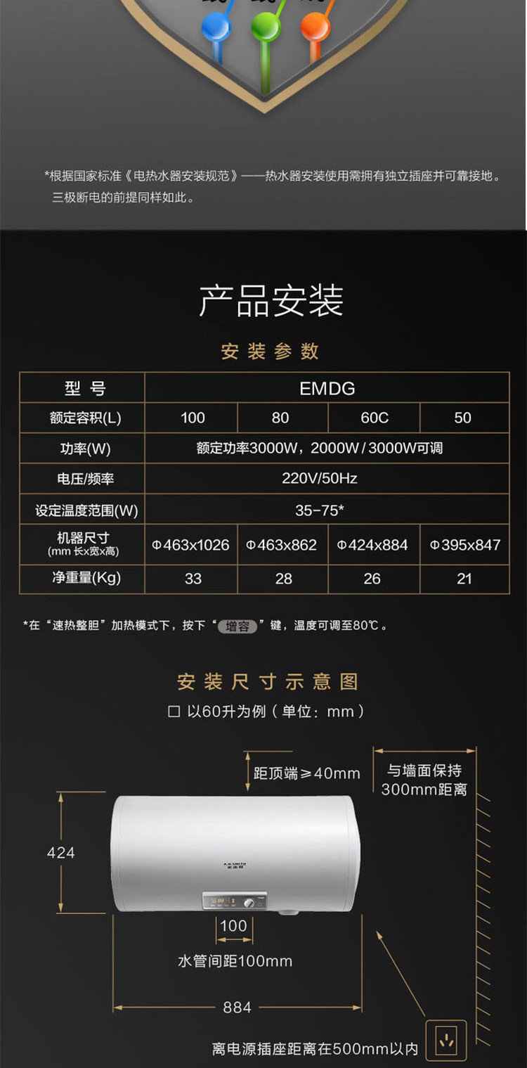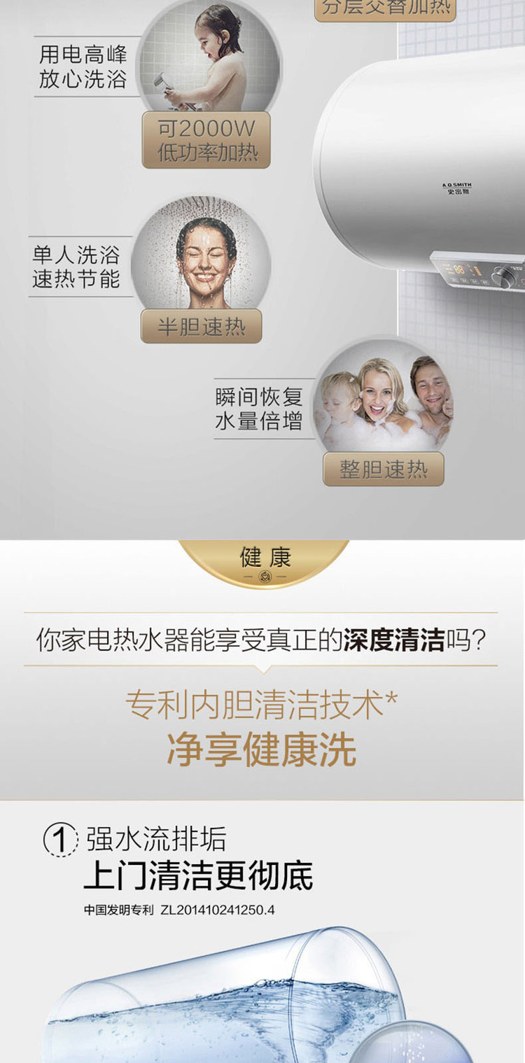 A.O.SMITH 史密斯免换镁棒100升电热水器家用洗澡E100MDG 大容量