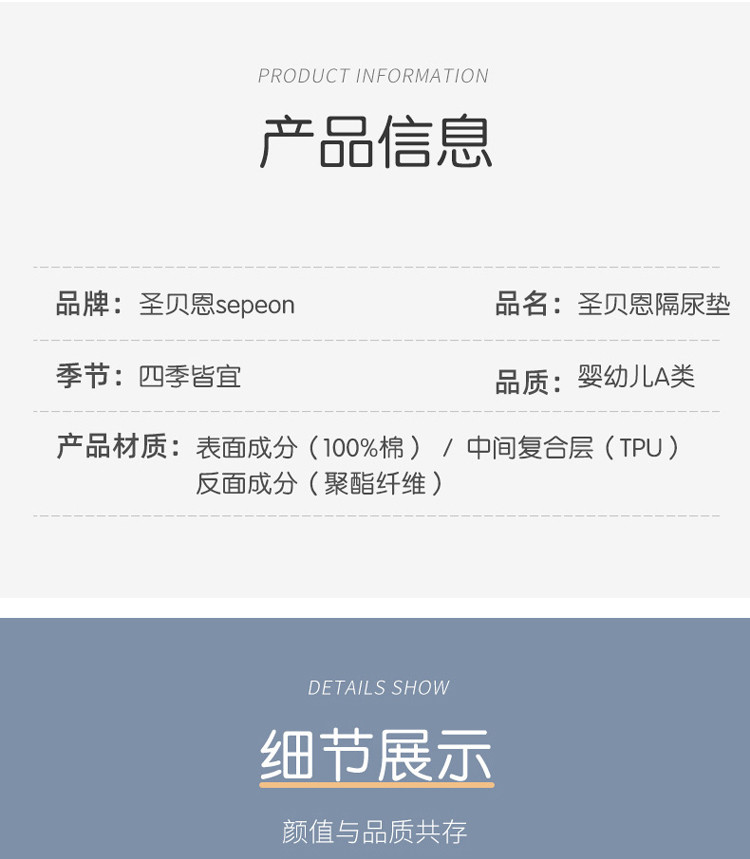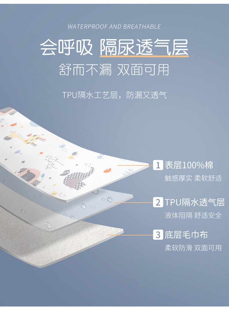 圣贝恩 A类婴儿隔尿垫防水可洗透气水洗月经姨妈大尺寸儿童尿垫四季纯棉