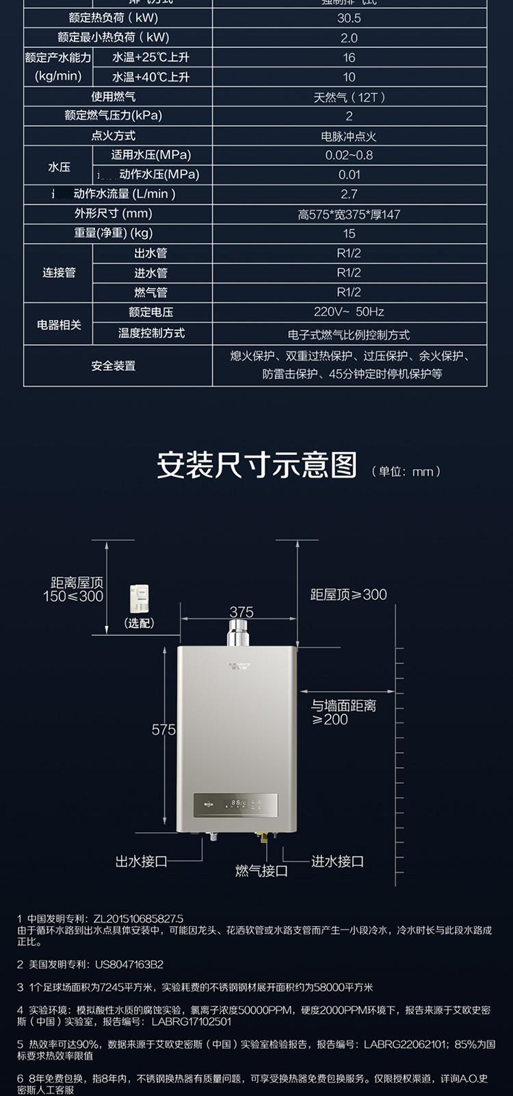 A.O.SMITH 史密斯16升零冷水燃气热水器BJS单管巡航不锈钢换热器包8年恒温