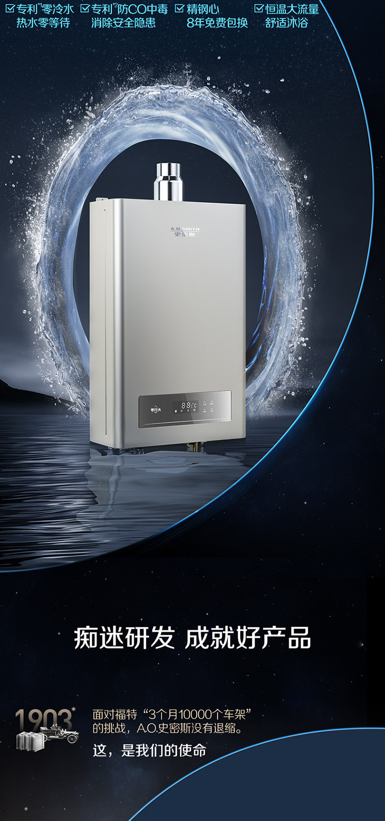A.O.SMITH 史密斯16升零冷水燃气热水器BJS单管巡航不锈钢换热器包8年恒温