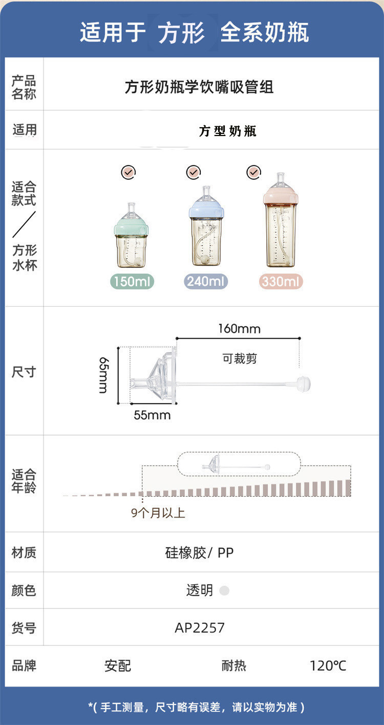 安配 学饮吸管安配适配于赫根奶瓶吸管适用学饮杯吸管手柄奶瓶刷套装