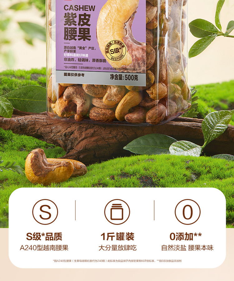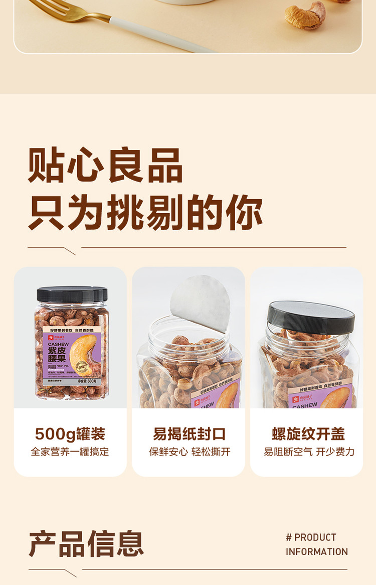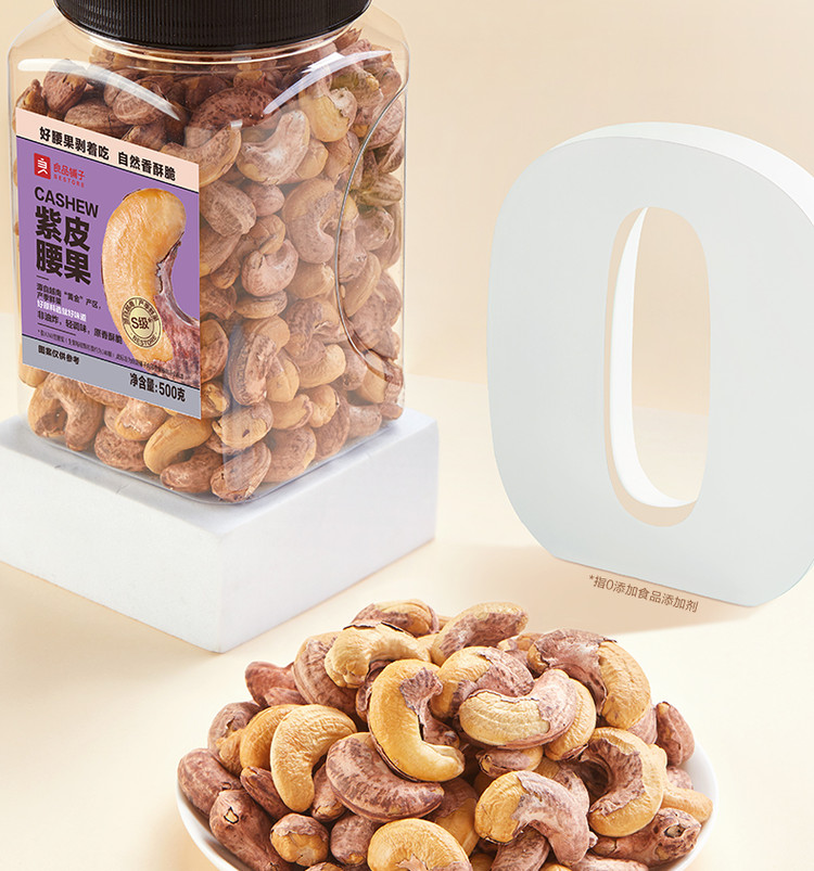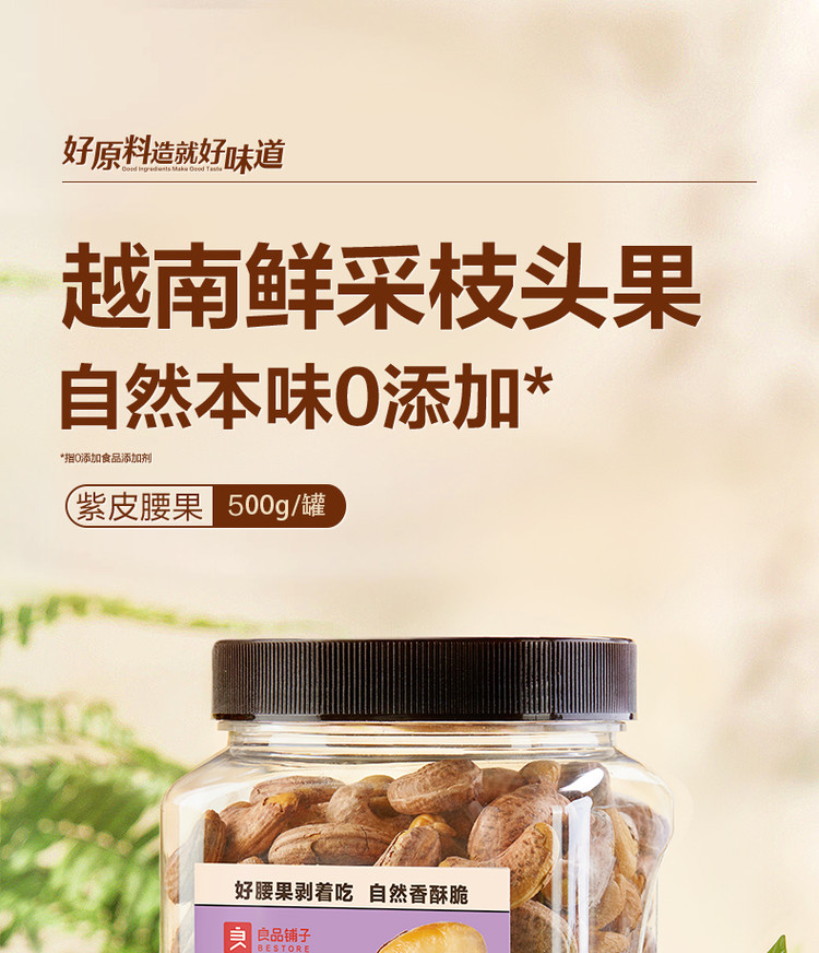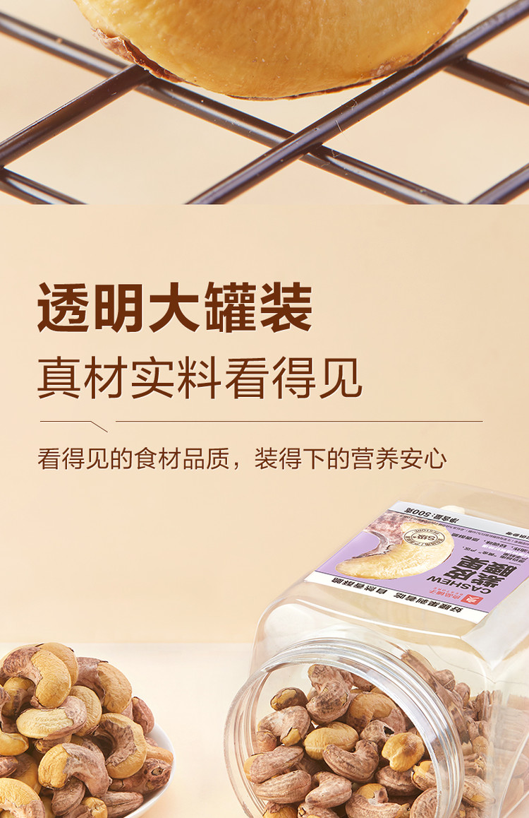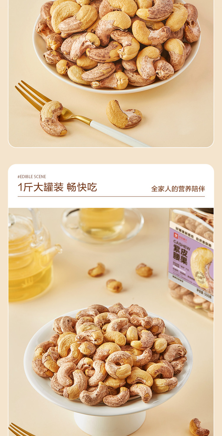 良品铺子 罐装紫衣腰果500g越南带皮干果坚果紫皮腰果仁原味孕妇零食