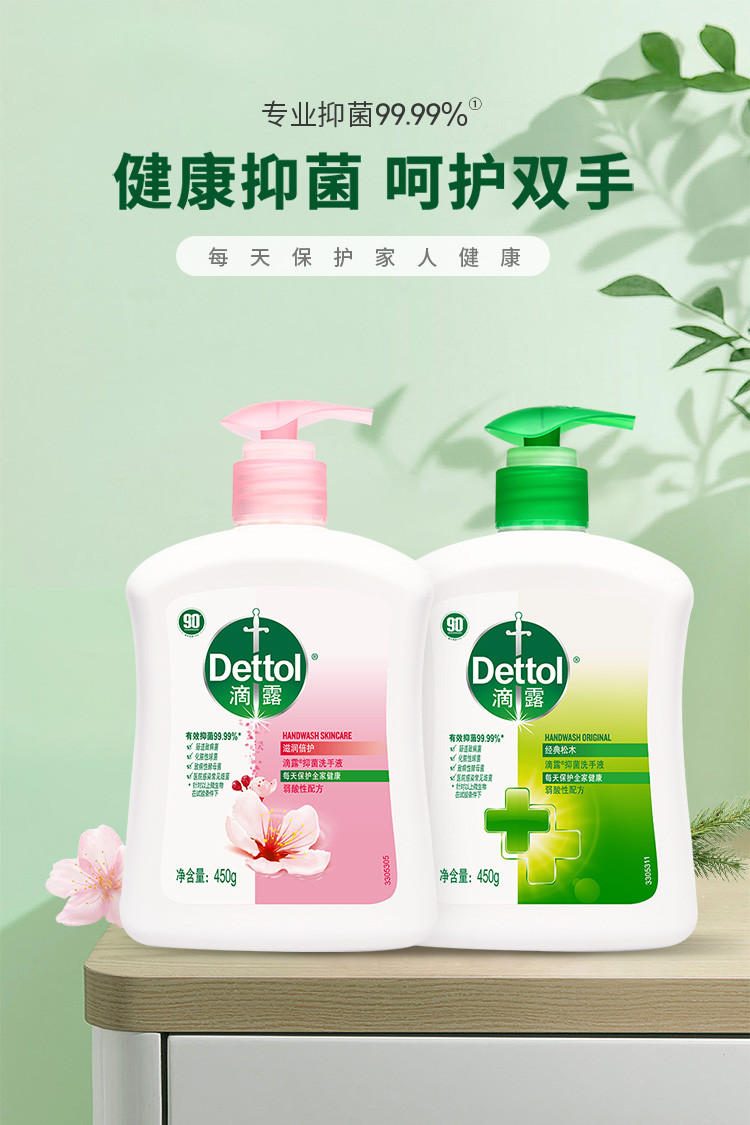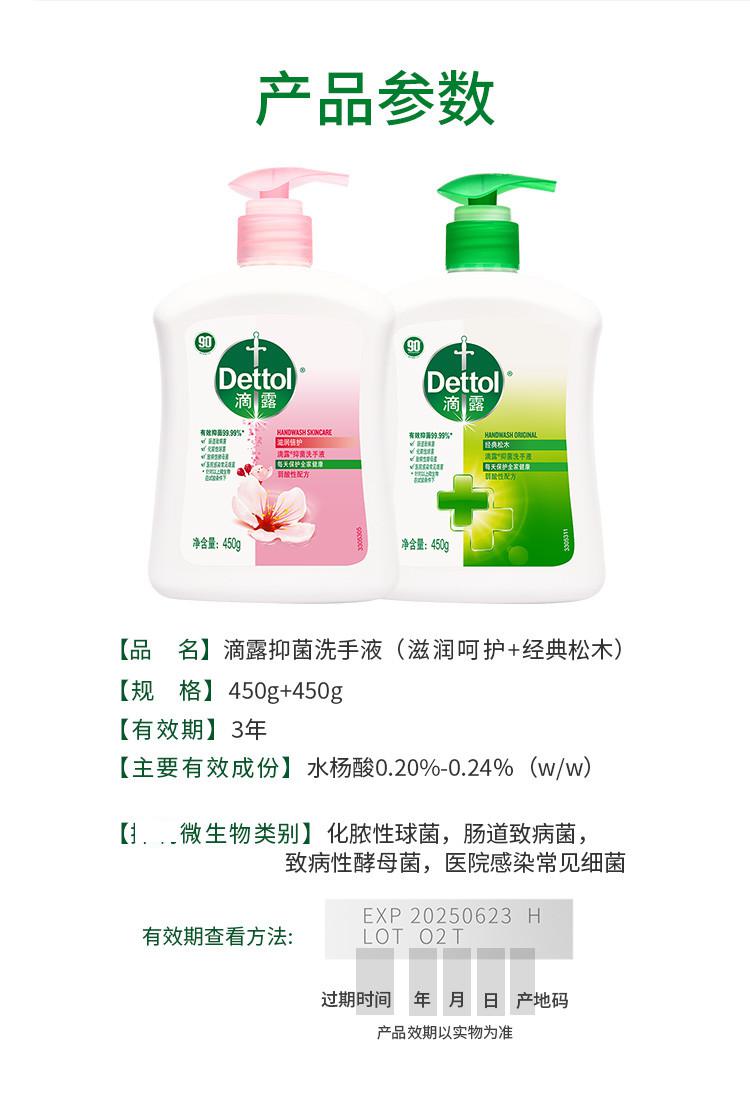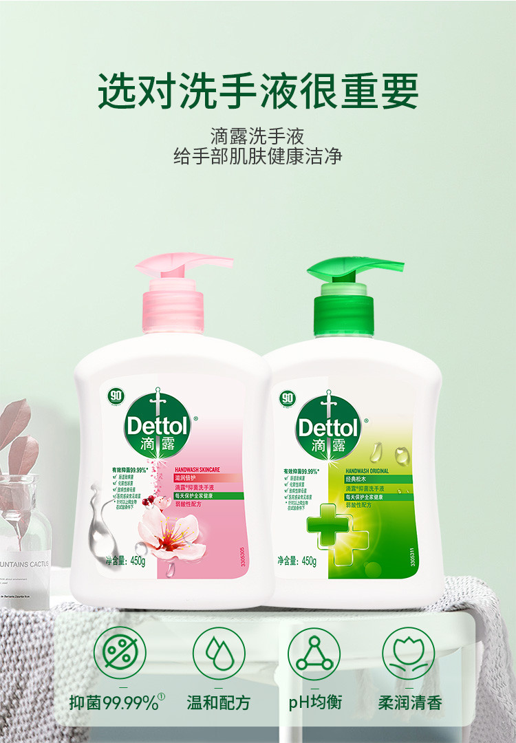 Dettol 【抑菌99.99%】滴露抑菌洗手液450g+450g瓶装 温和配方
