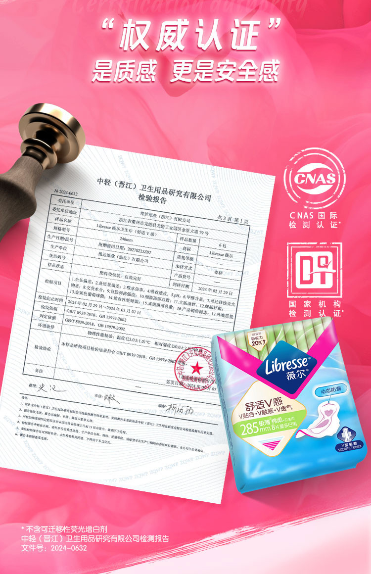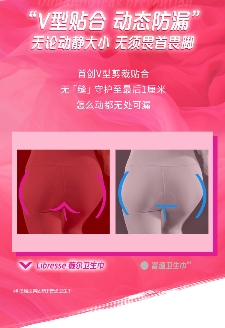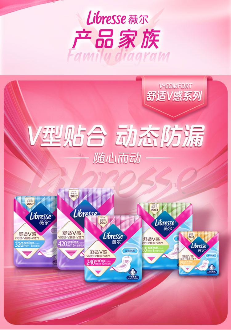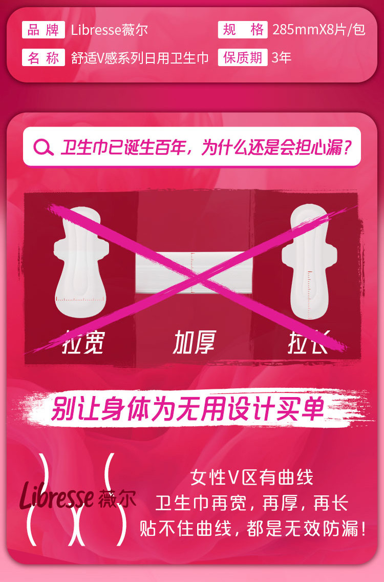 LIBRESSE 【优于新国标】薇尔舒适V感卫生巾日用/夜用姨妈巾贴身防漏