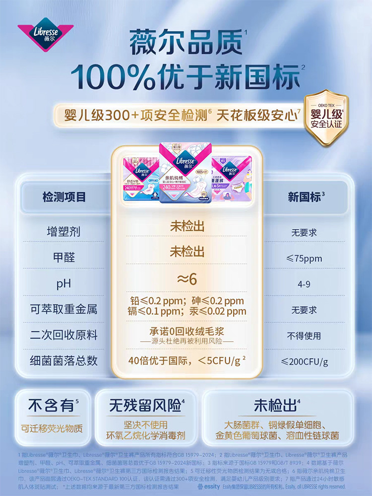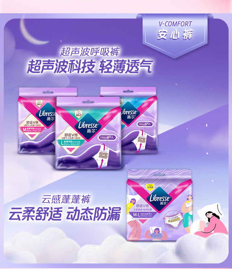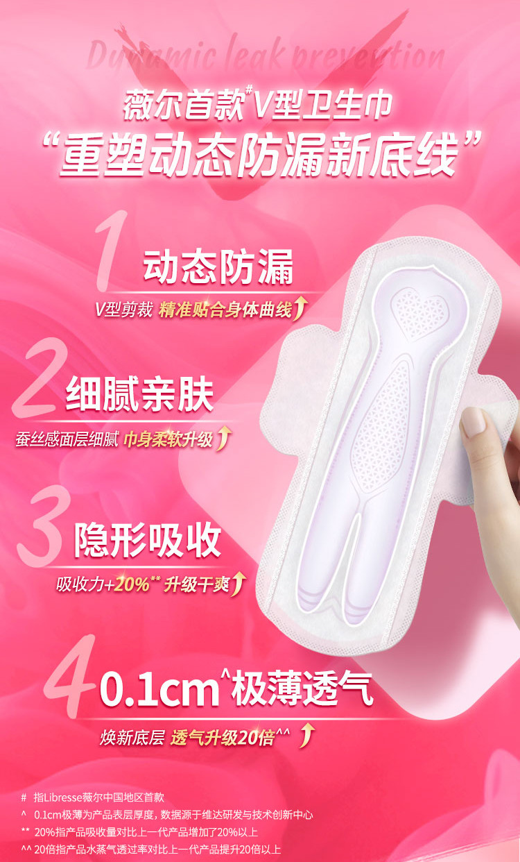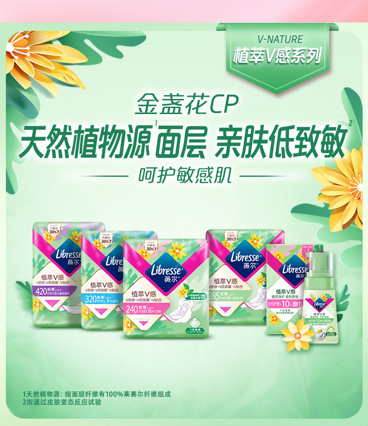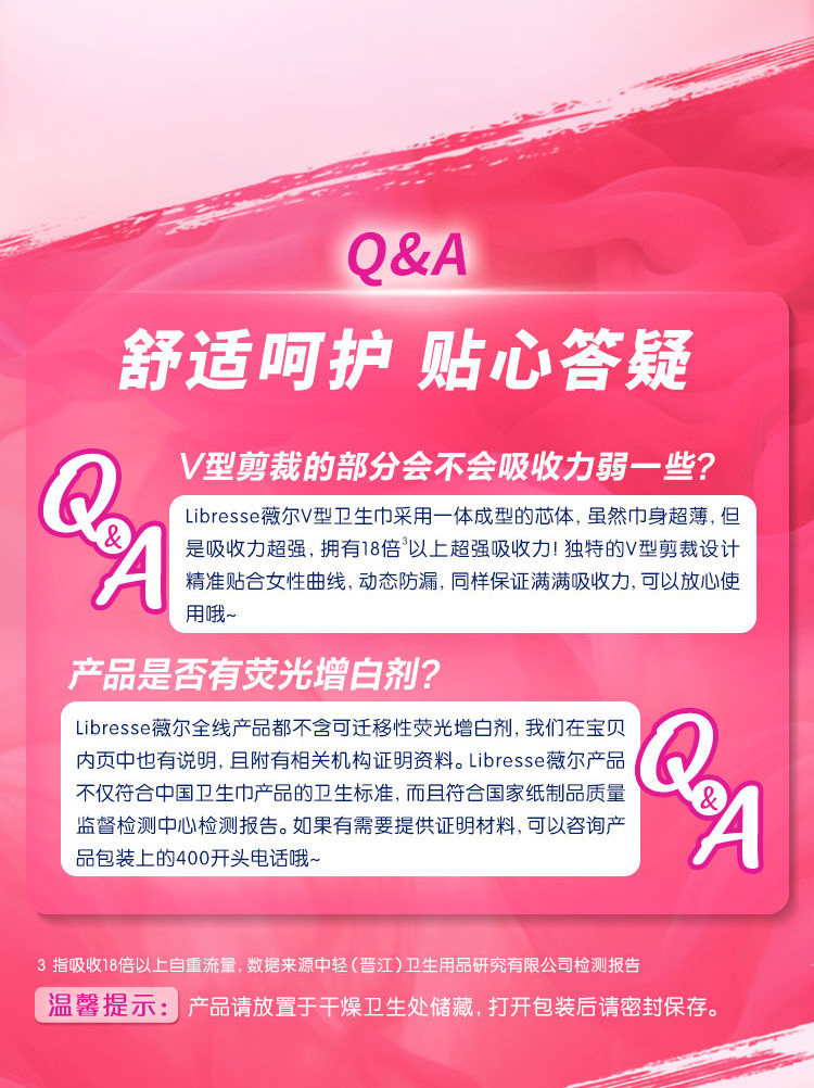 LIBRESSE 【优于新国标】薇尔舒适V感卫生巾日用/夜用姨妈巾贴身防漏