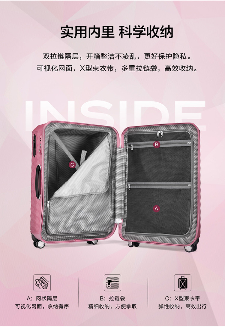 新秀丽 商务行李箱男女时尚菱形几何图案拉杆箱进口脚轮旅行登机箱 DX4
