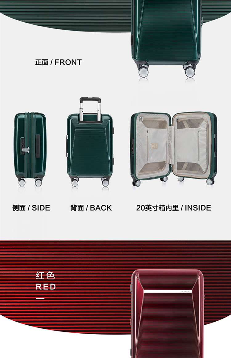 很精致的箱子,这个绿色很特别,以后拿箱子也不用担心和别人的弄混了。价格确实贵,但是箱子买一个也能用很久,希望它很结实吧。