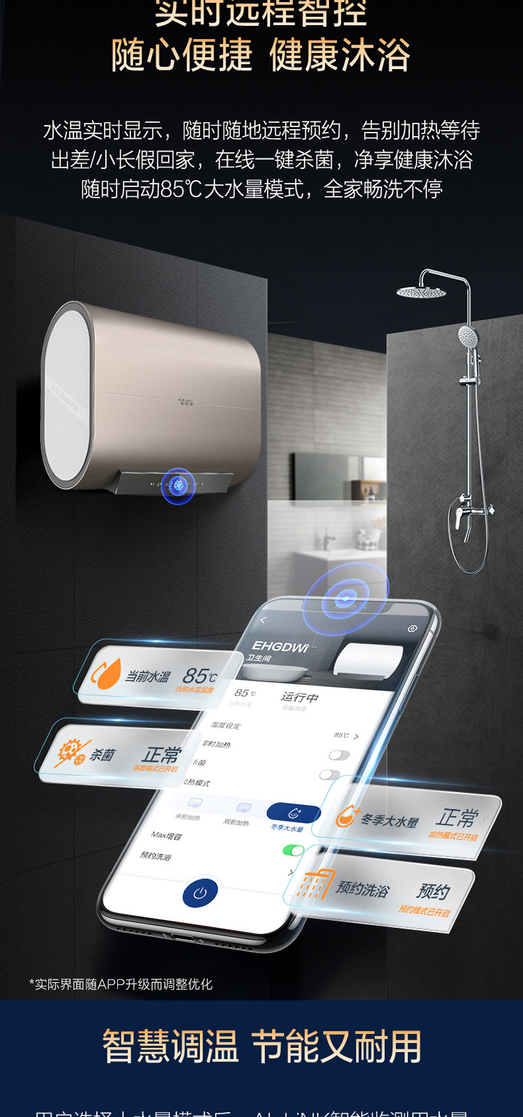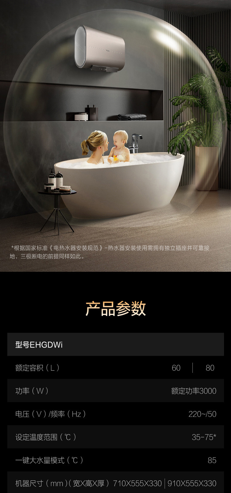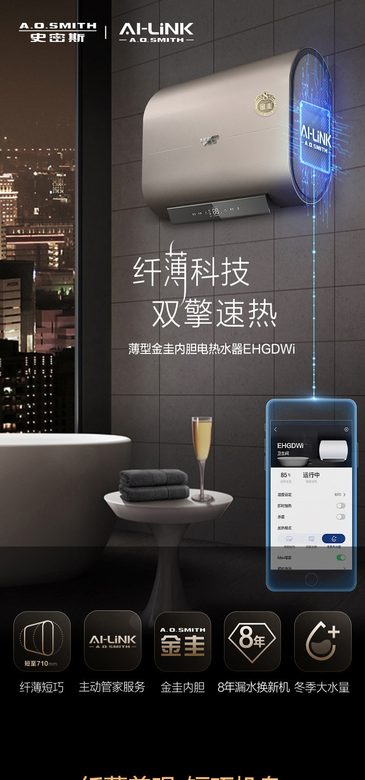 A.O.SMITH 史密斯电热水器 纤薄双胆扁桶金圭内胆双擎速热E60HGDWi AI-Link