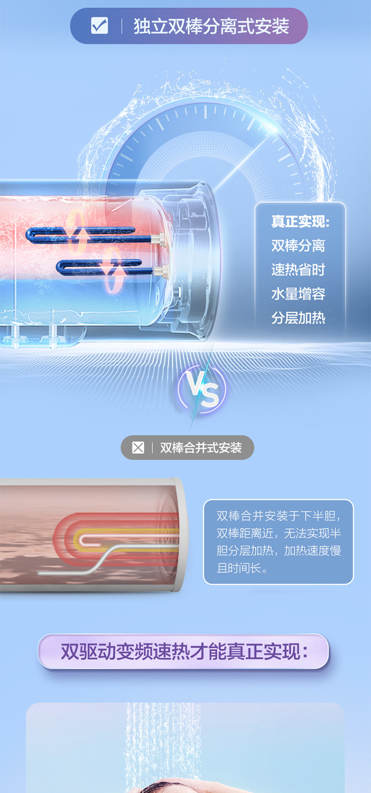 佳尼特 史密斯佳尼特60/80升电热水器TT金圭内胆双棒分离速热 大屏遥控