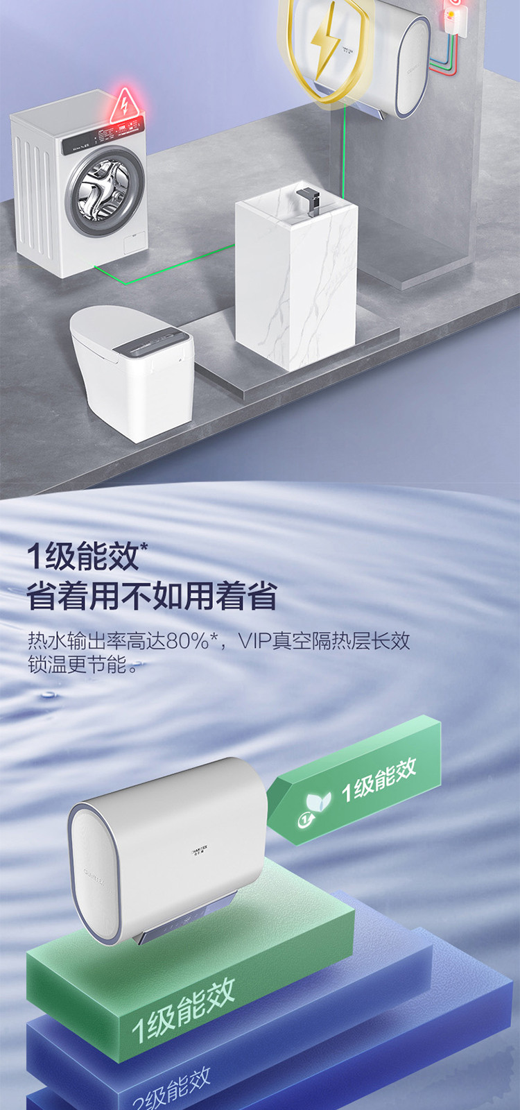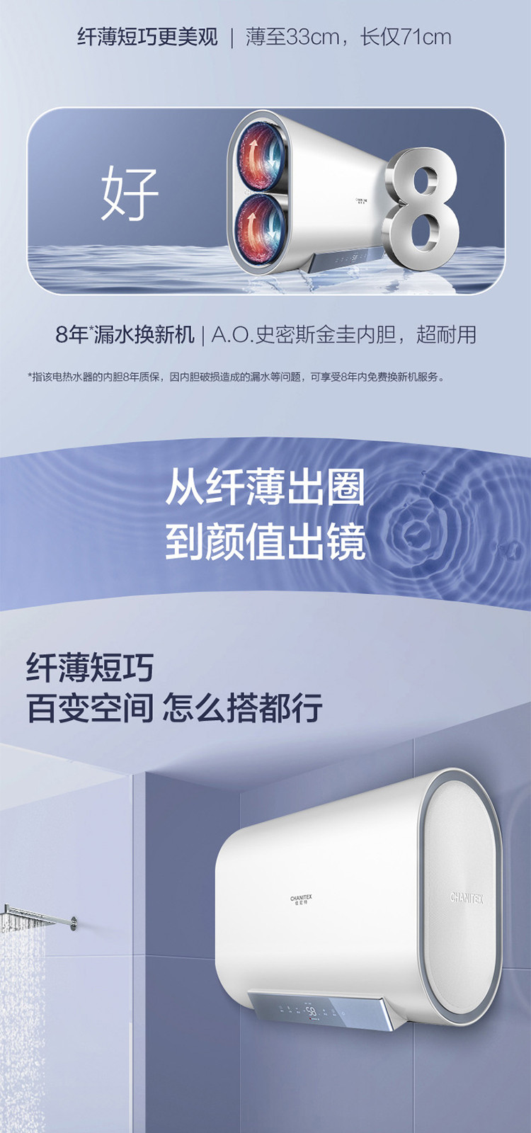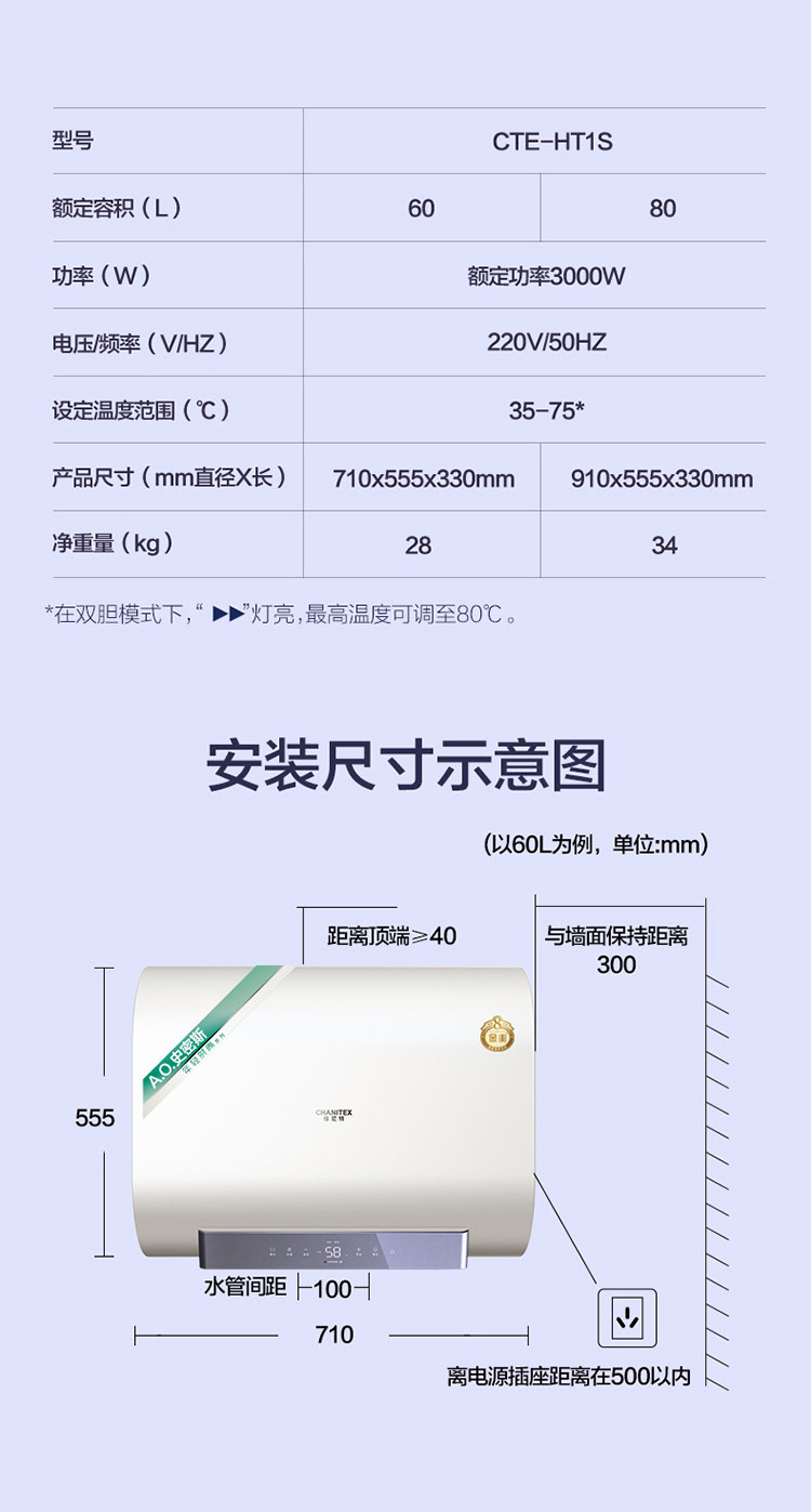 佳尼特 【热销爆款】史密斯佳尼特纤薄双胆扁桶电热水器HT1S双3KW速热