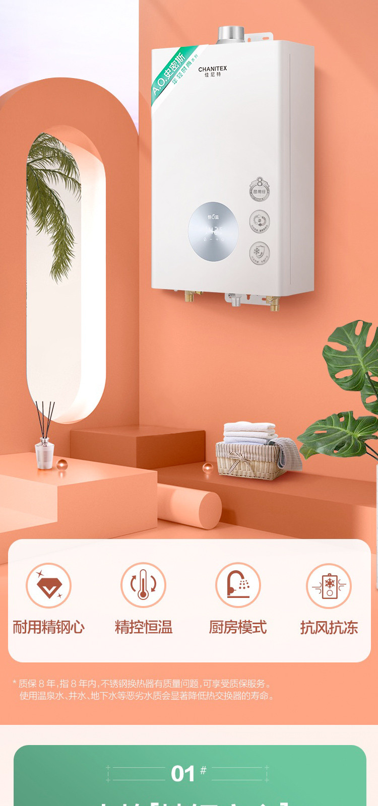 佳尼特 史密斯佳尼特燃气热水器TC1不锈钢换热器包8年13升16升精控恒温