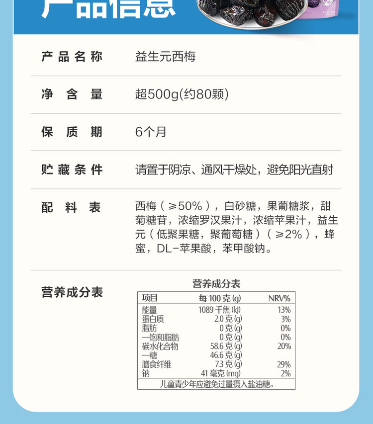 良品铺子 【约80小袋】益生元西梅蜜饯话梅西梅干梅子果干解馋小吃超500g