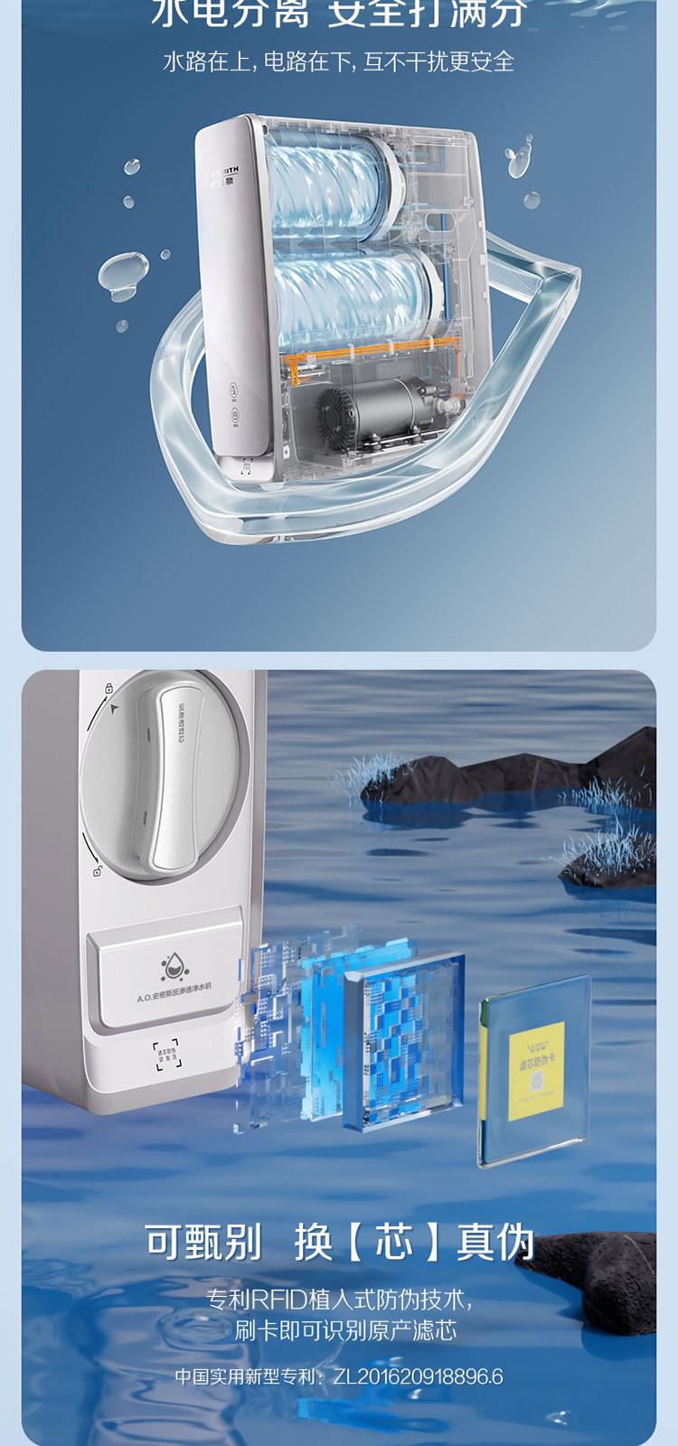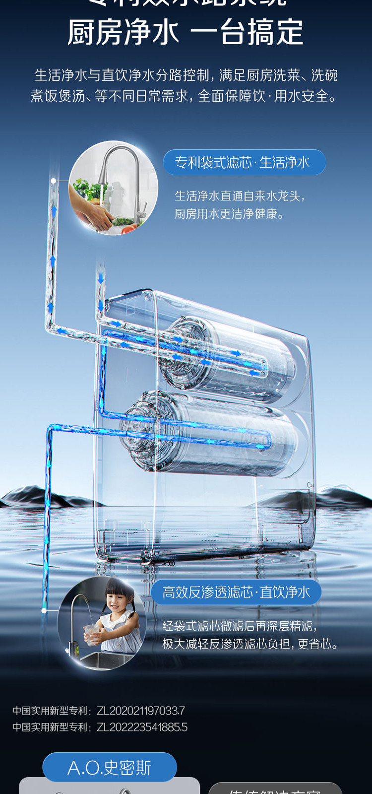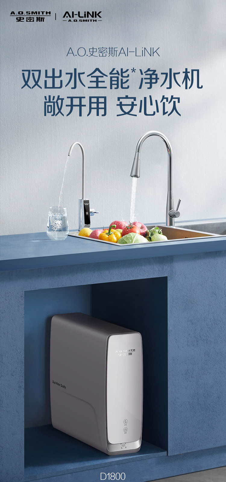 A.O.SMITH 【超级新品】史密斯双出水净水器家用直饮双水路5升/分钟超大流量