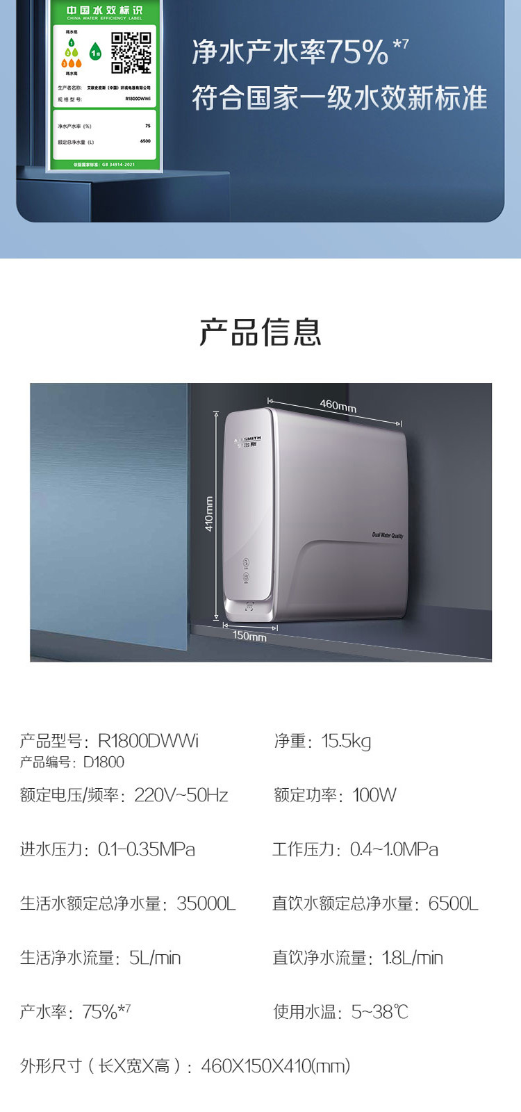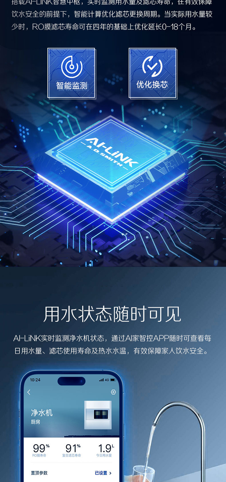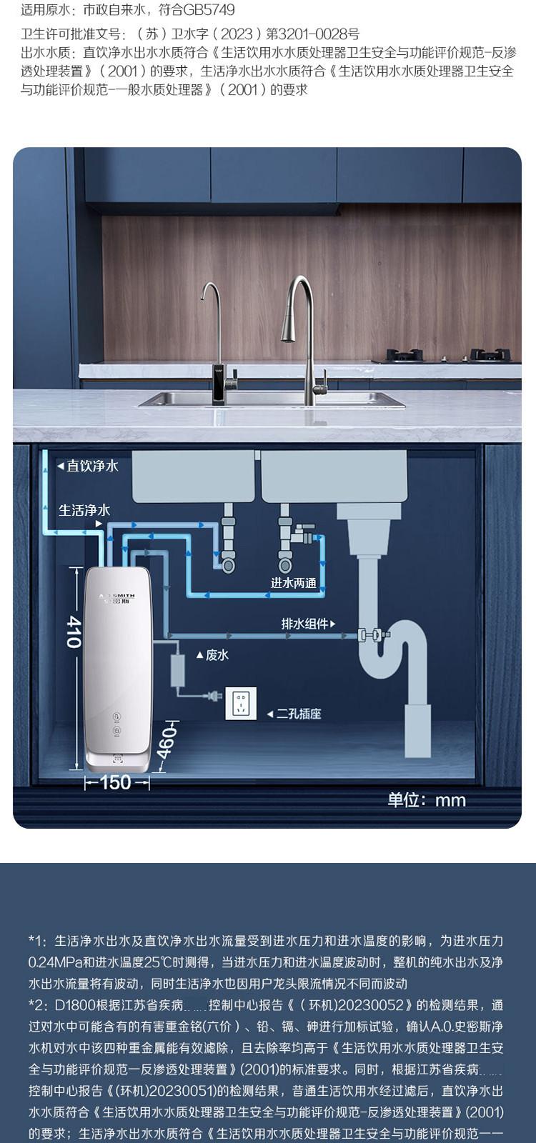 A.O.SMITH 【超级新品】史密斯双出水净水器家用直饮双水路5升/分钟超大流量