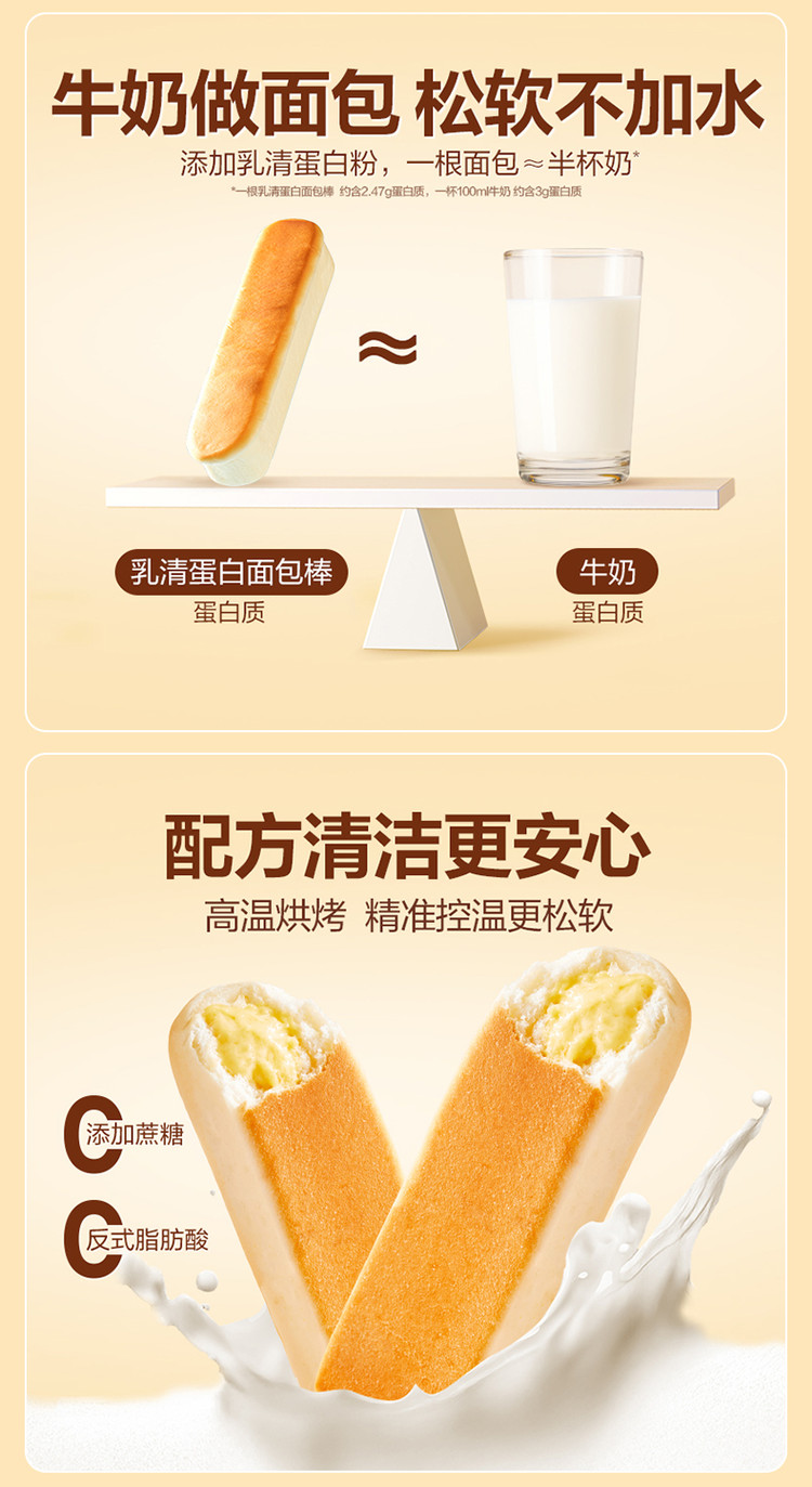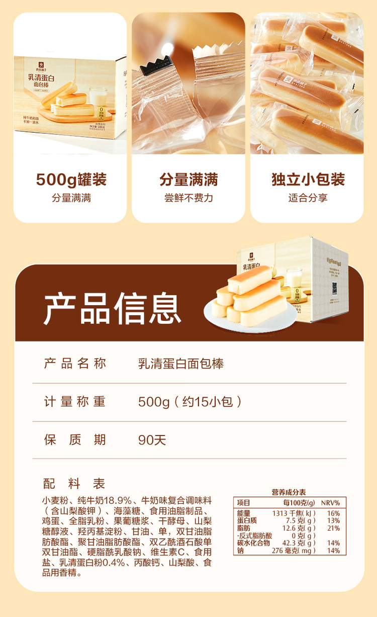 良品铺子 乳清蛋白棒整箱面包棒独立包装早餐营养代餐零食下午茶夹心吐司