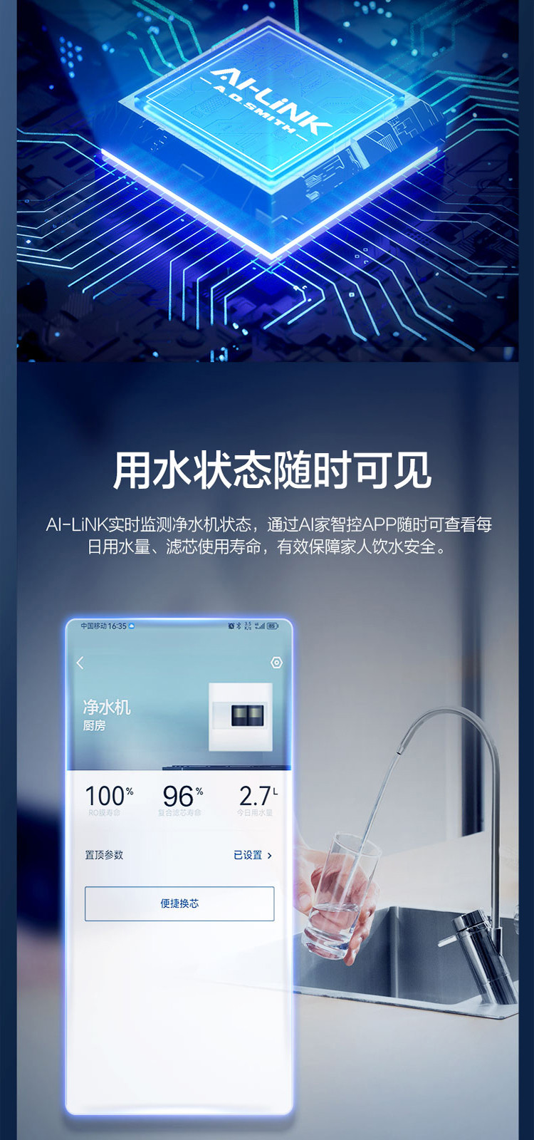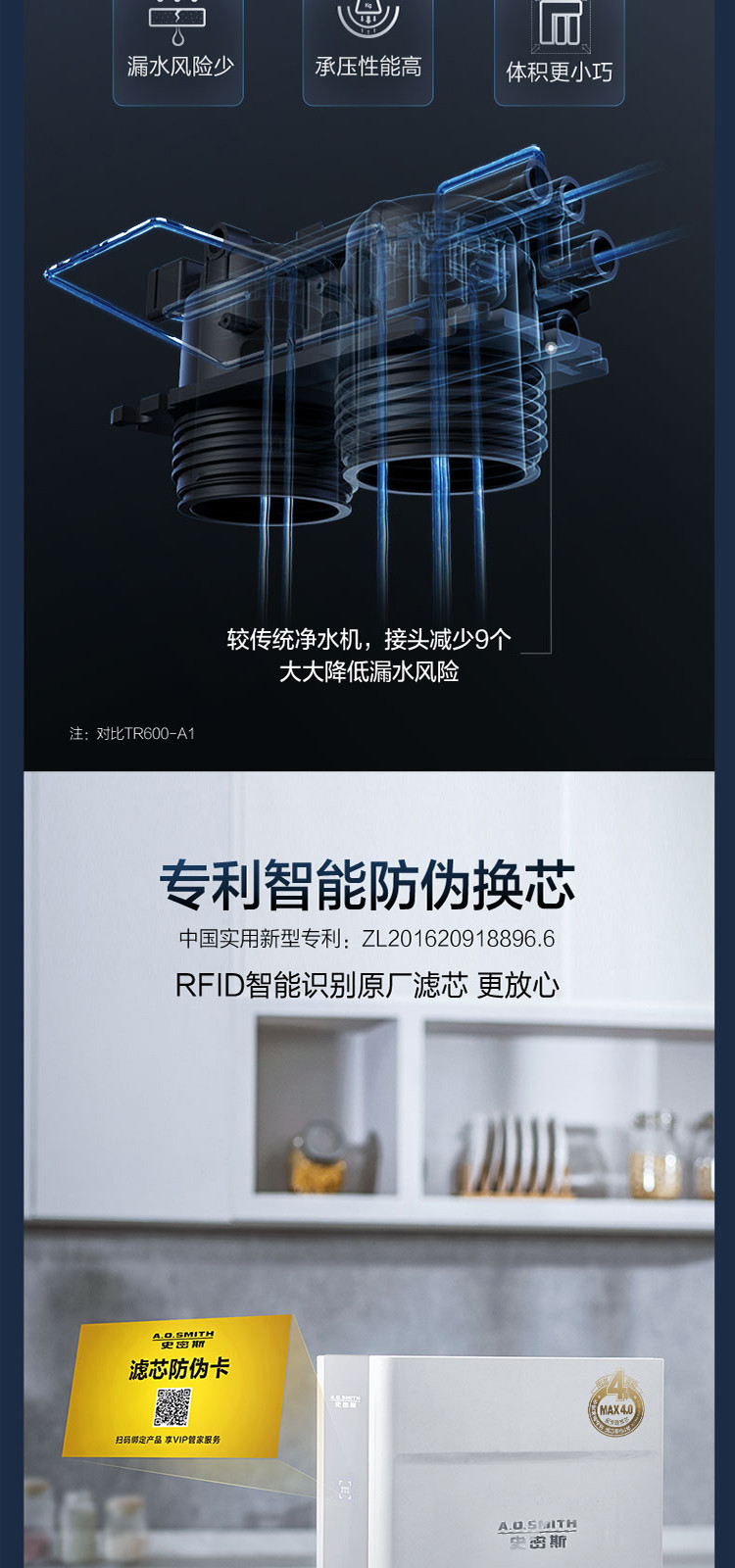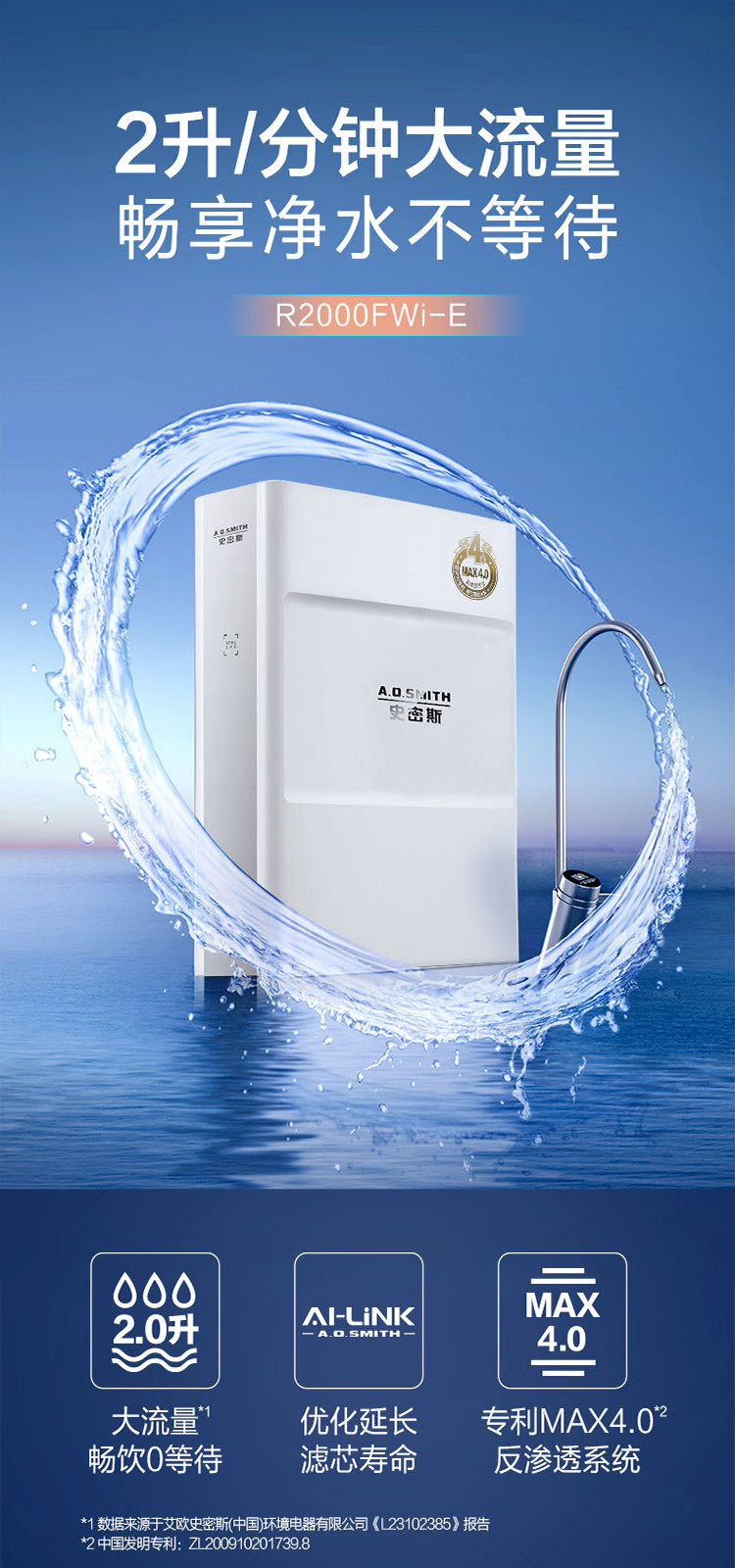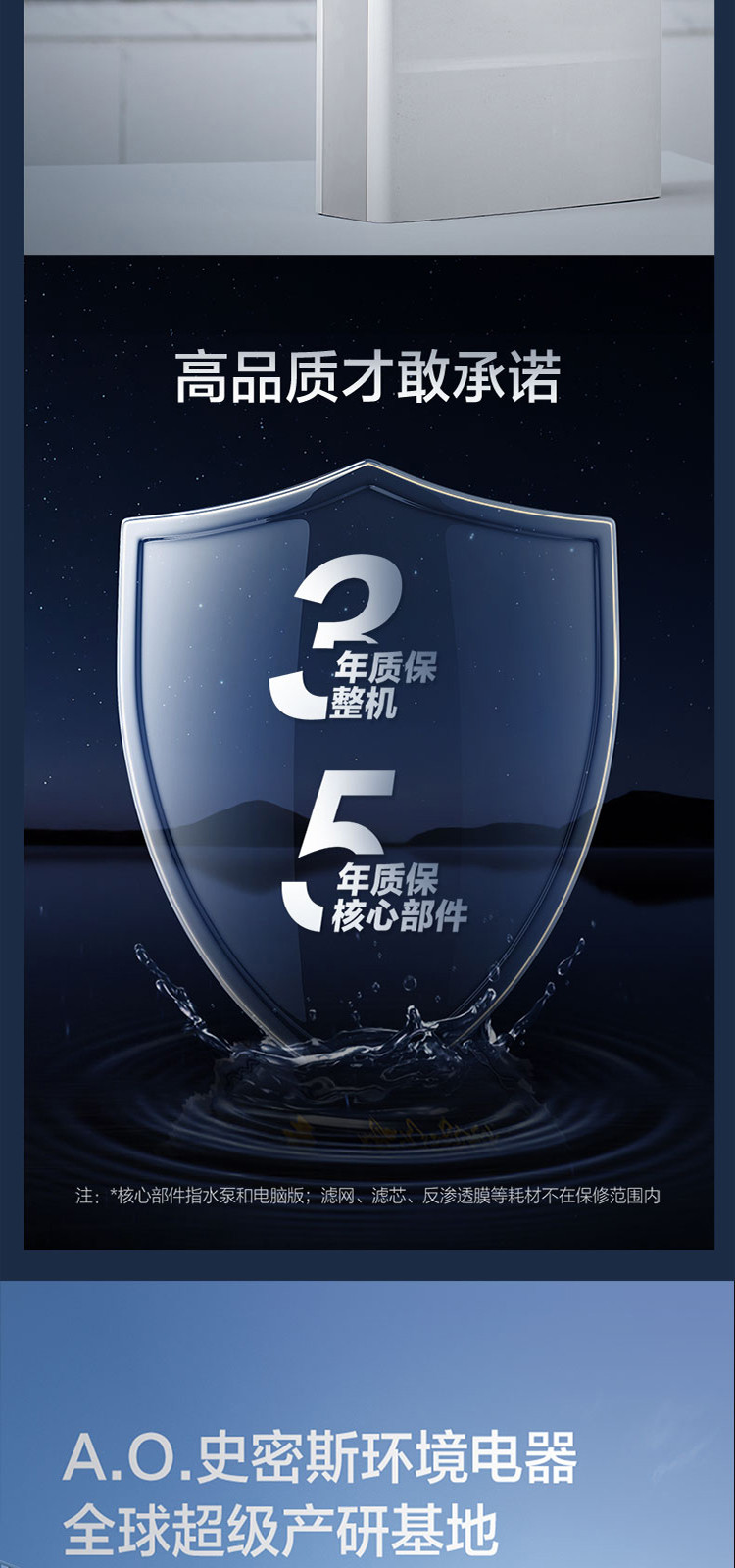 A.O.SMITH 史密斯净水器家用专利4年RO膜反渗透3:1高水效直饮净水机