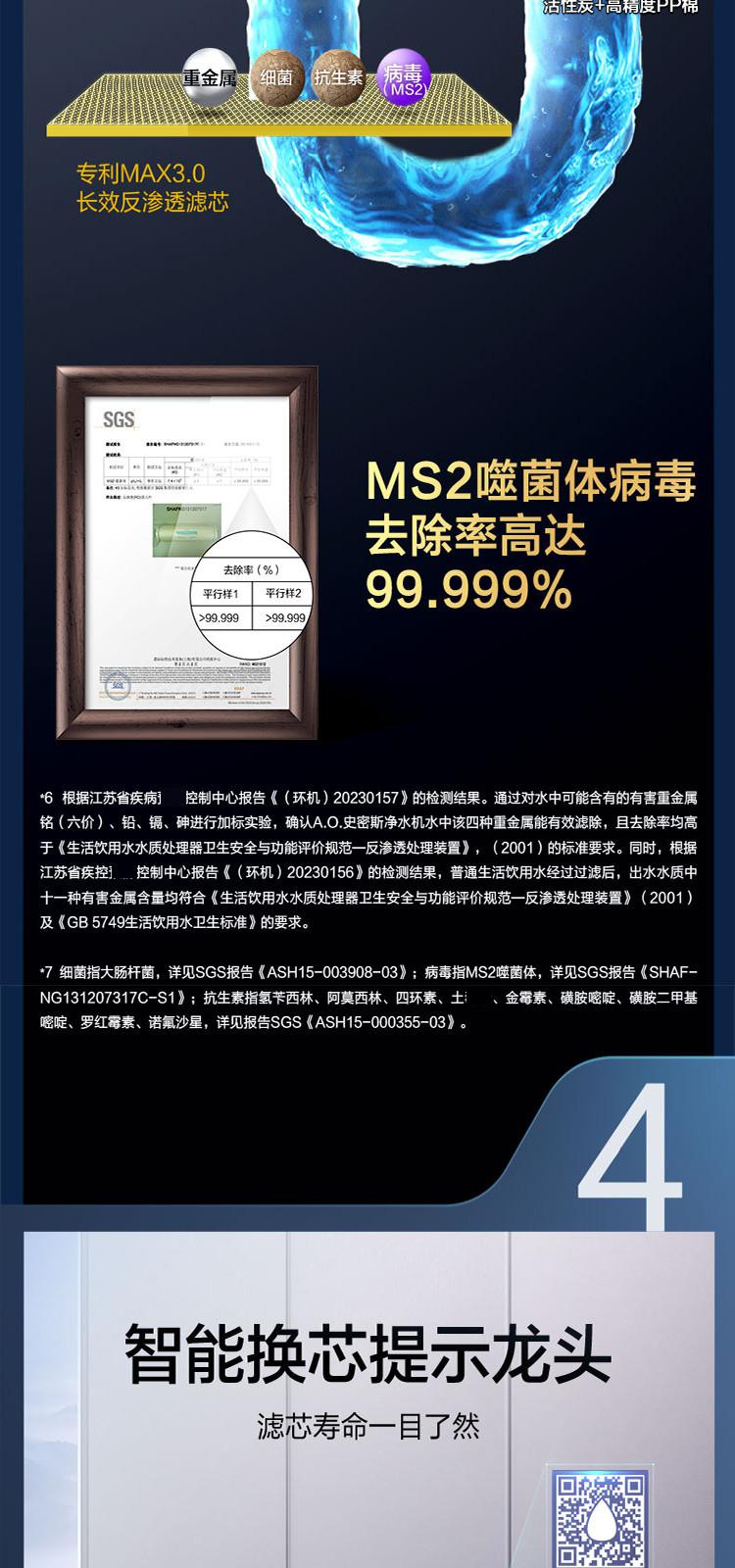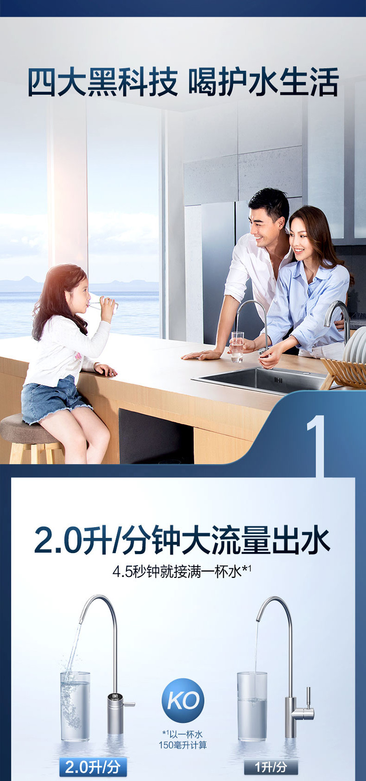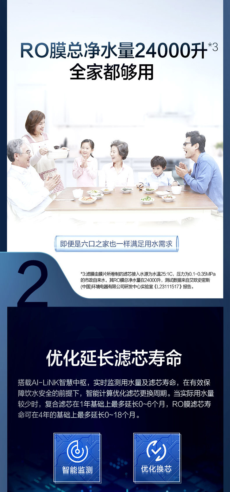 A.O.SMITH 史密斯净水器家用专利4年RO膜反渗透3:1高水效直饮净水机