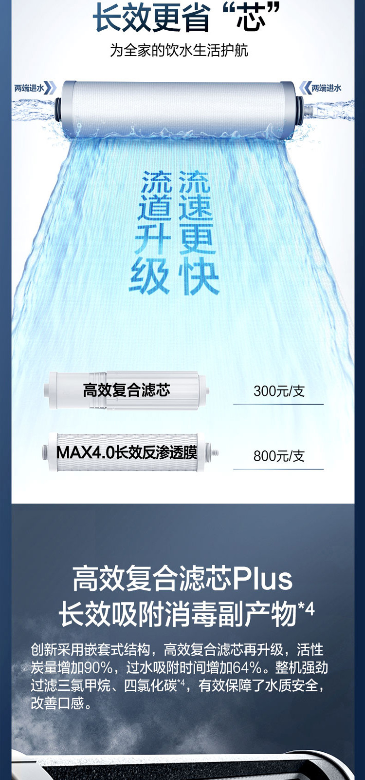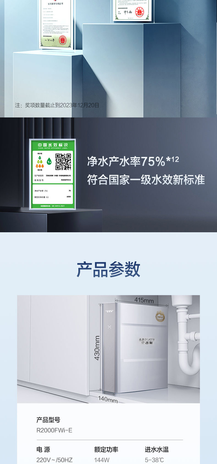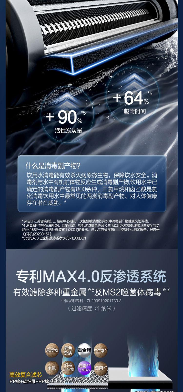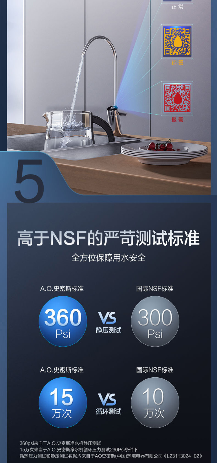 A.O.SMITH 史密斯净水器家用专利4年RO膜反渗透3:1高水效直饮净水机