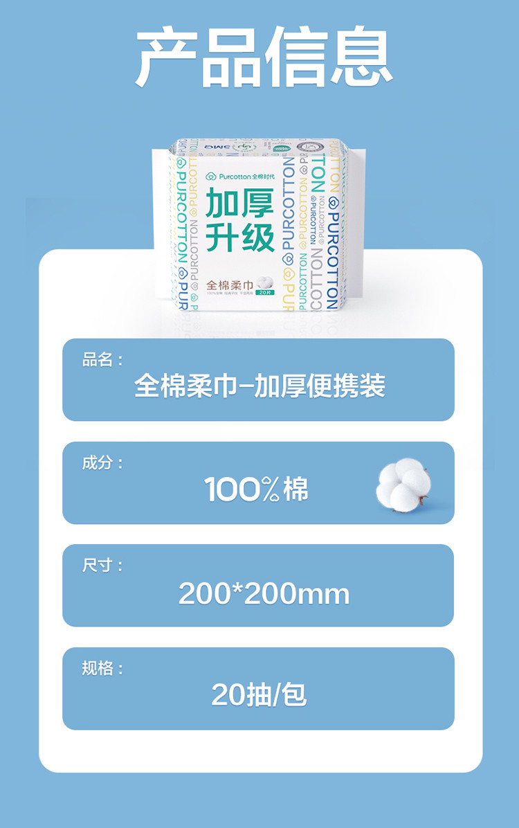 全棉时代 【20片便携装】全棉柔巾一次洗脸巾卸妆洁面巾干湿两用擦脸巾