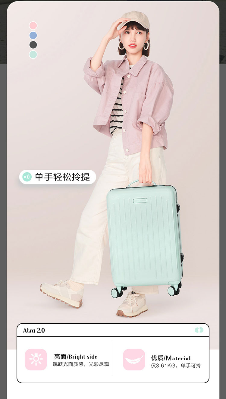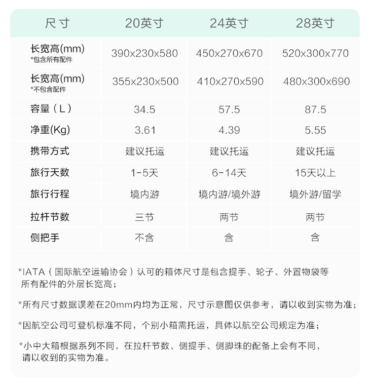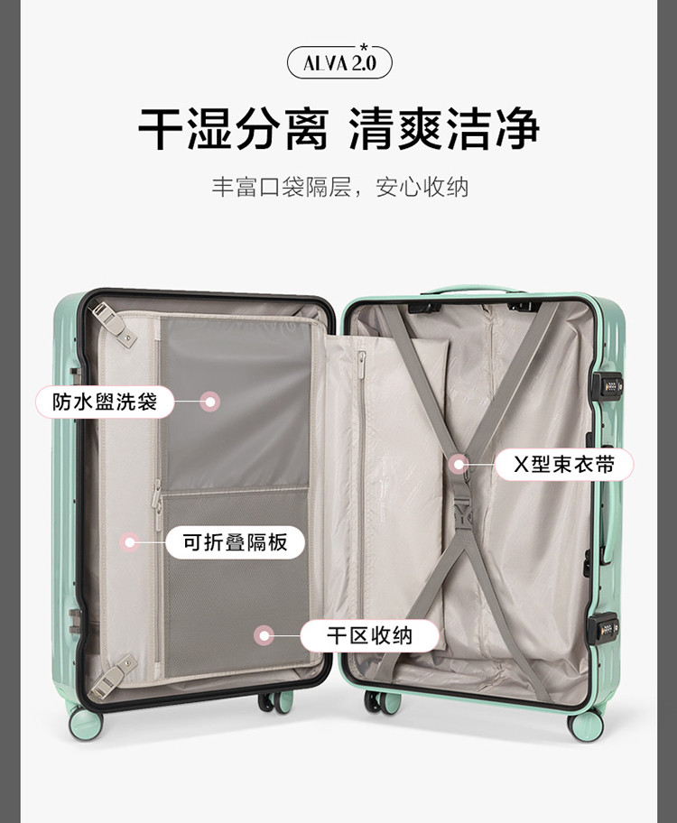 材质做工:做工精细 有型轻便 飞机轮灵活低燥 容量情况:分区合理 容量适合2-3天出行需求 外观颜值:简洁 有范 低奢有面
