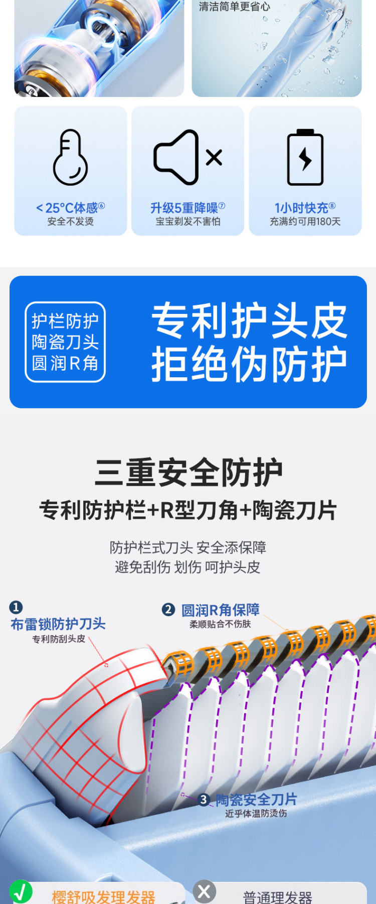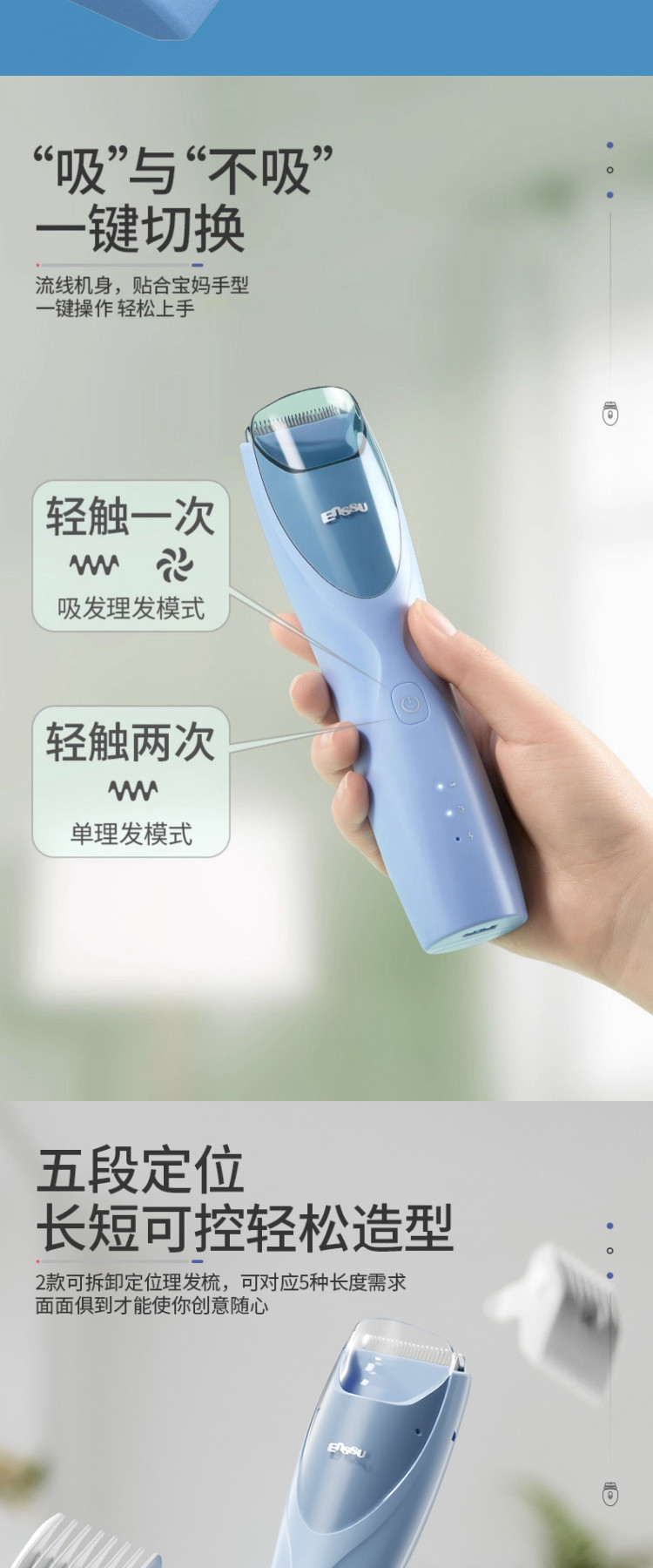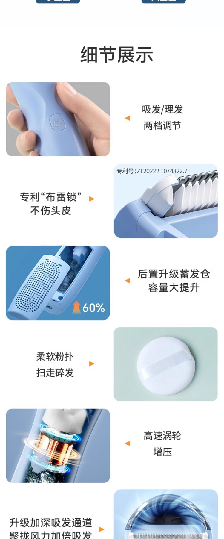 这款婴儿自主吸发理发器太好用了!静音低噪,宝宝不抗拒、不哭闹。自动吸碎发,身上、地上都干净,不用再费劲清理。刀头温和不伤头皮,安全放心。操作简单,新手爸妈一用就会,整机可水洗,清洁超方便。续航够用,颜值高、质感好,在家理发省钱又省心,真心推荐给各位宝妈!