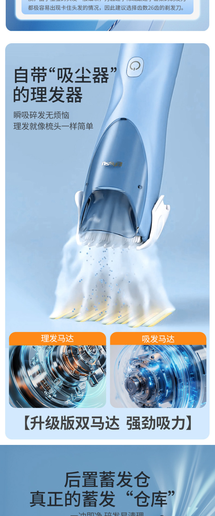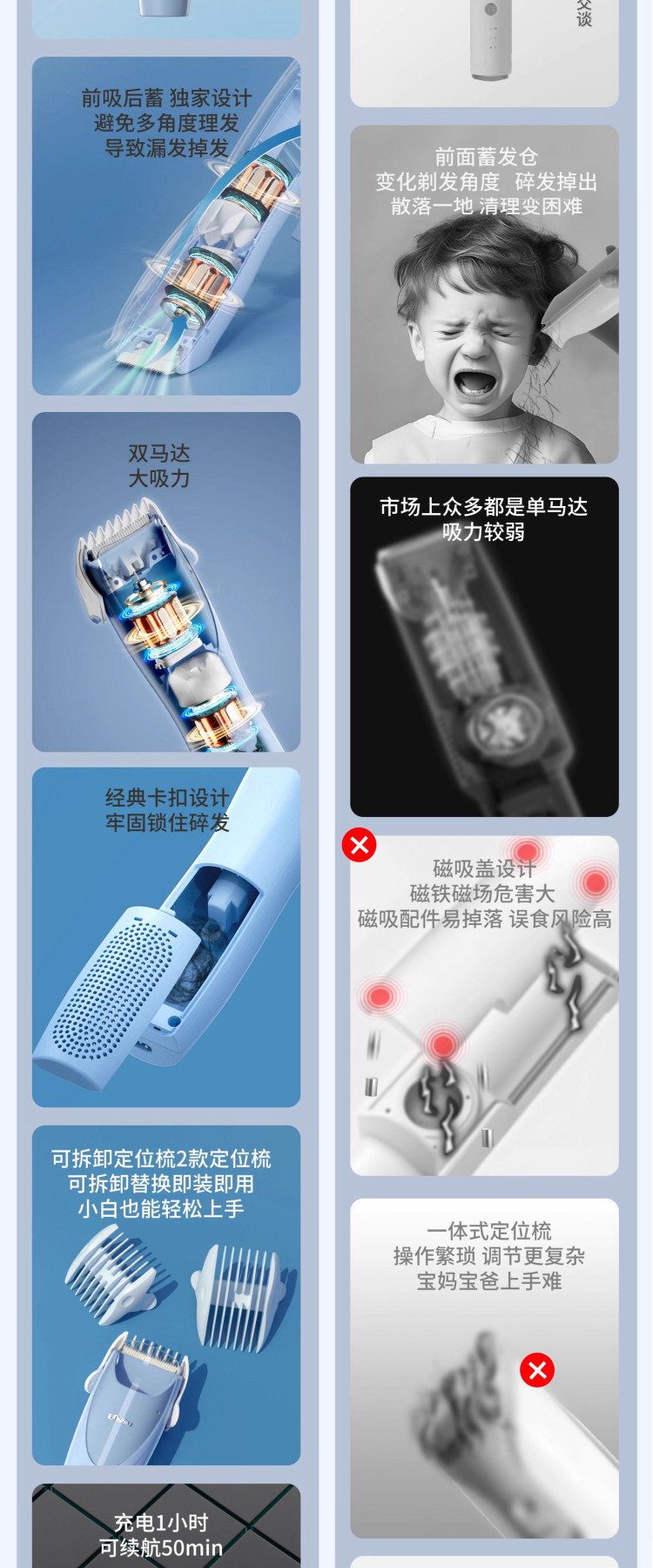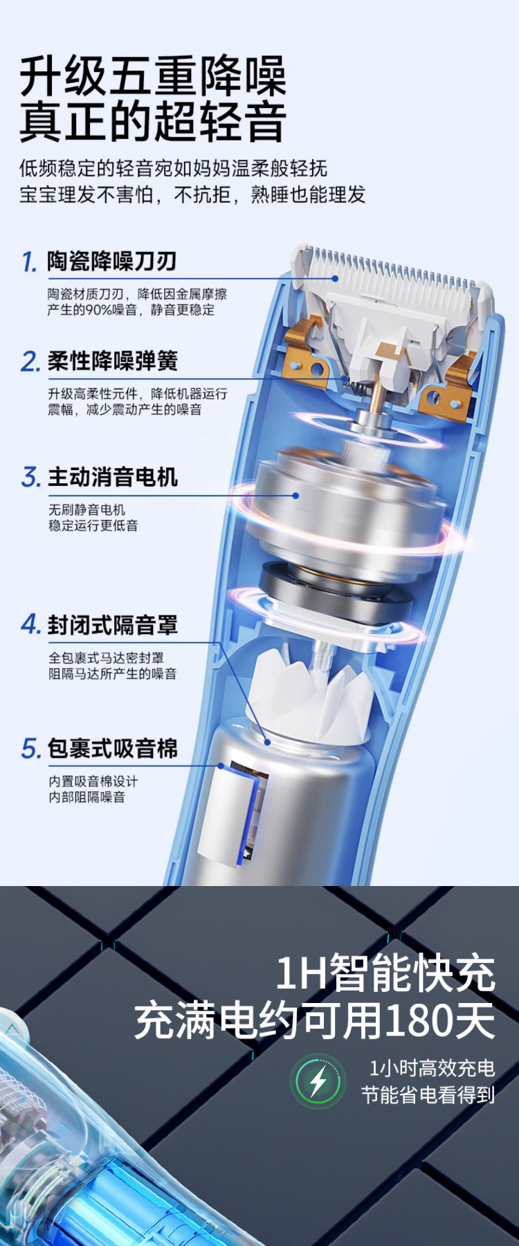 这款婴儿自主吸发理发器太好用了!静音低噪,宝宝不抗拒、不哭闹。自动吸碎发,身上、地上都干净,不用再费劲清理。刀头温和不伤头皮,安全放心。操作简单,新手爸妈一用就会,整机可水洗,清洁超方便。续航够用,颜值高、质感好,在家理发省钱又省心,真心推荐给各位宝妈!