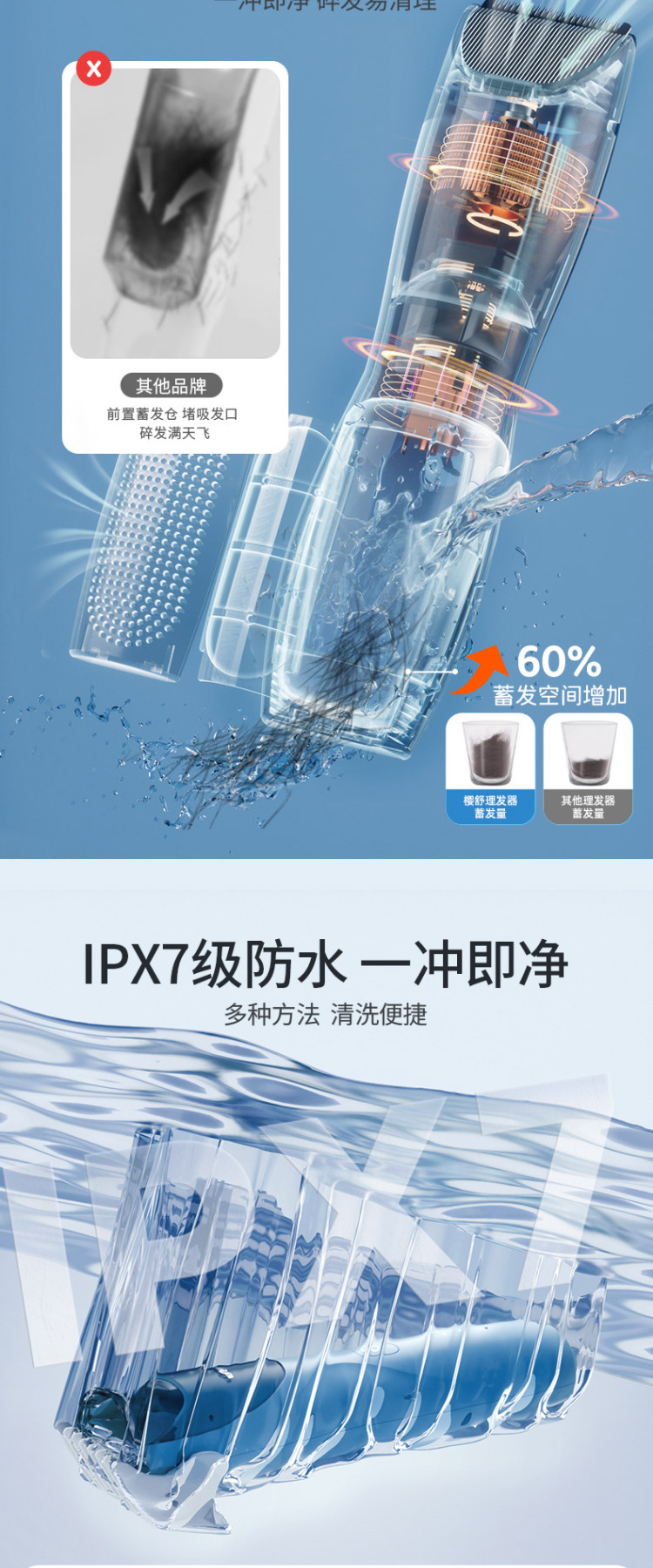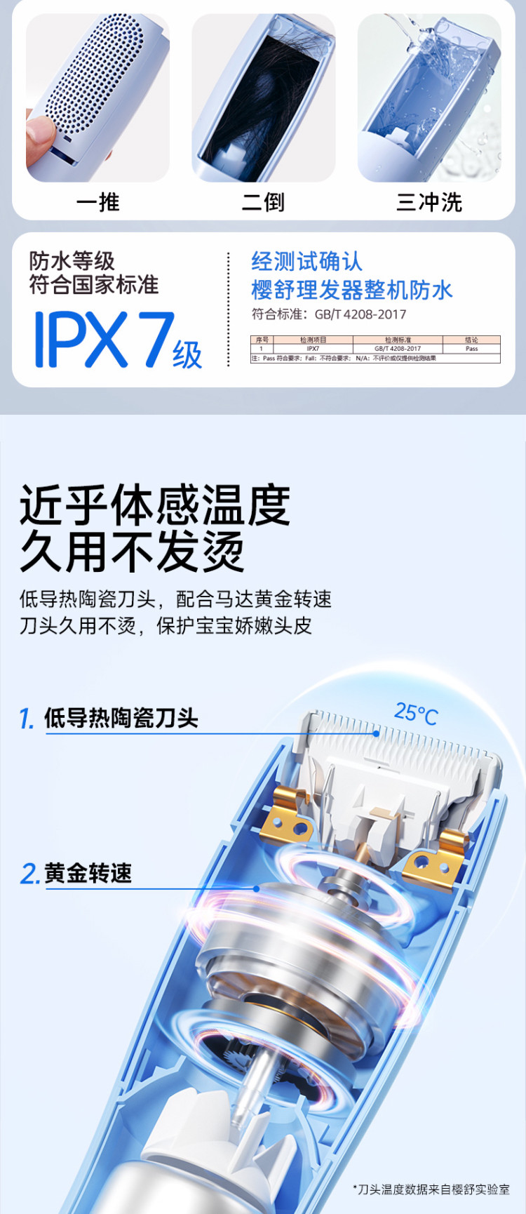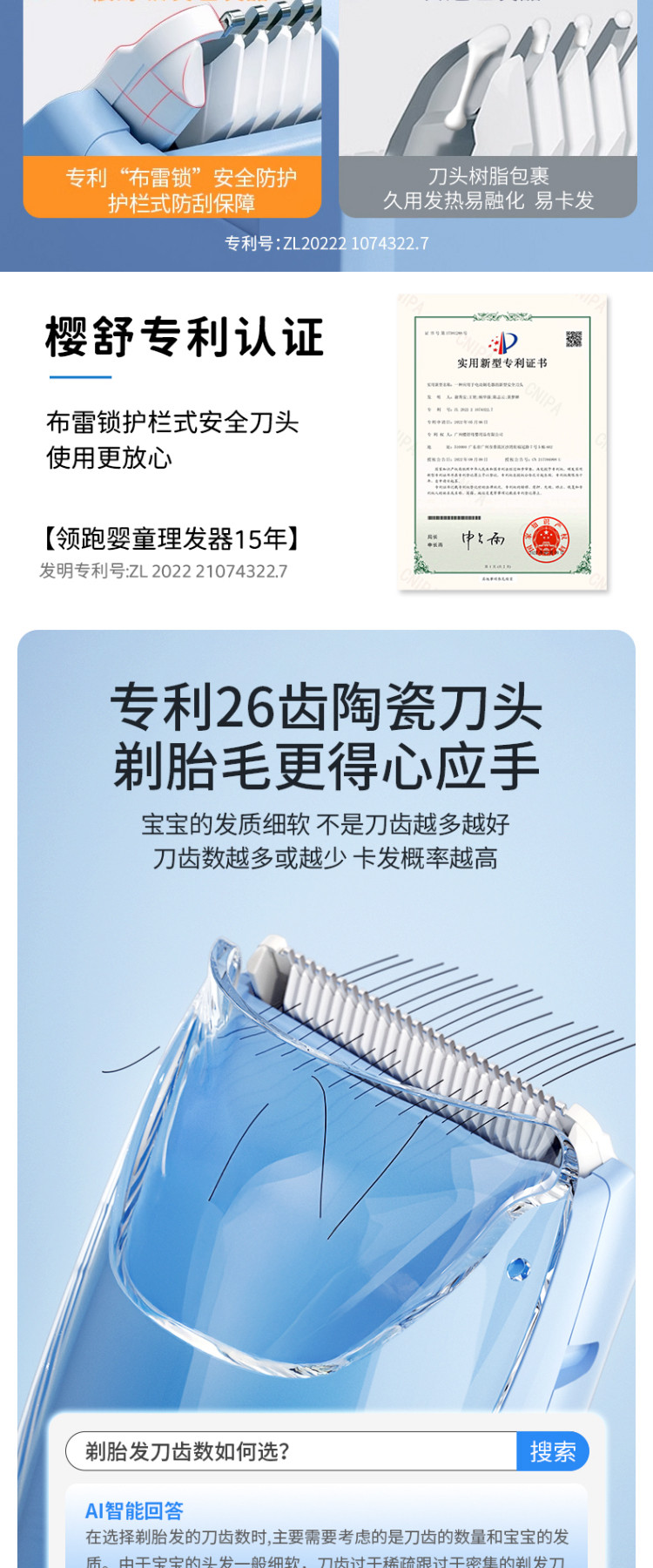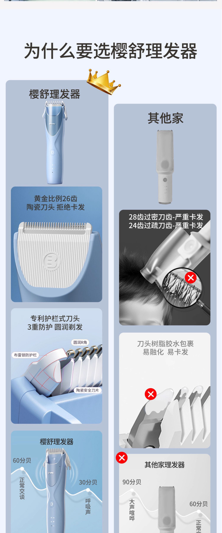 樱舒 婴儿理发器自动吸发静音剃头电推剪宝宝儿童防水陶瓷刀头