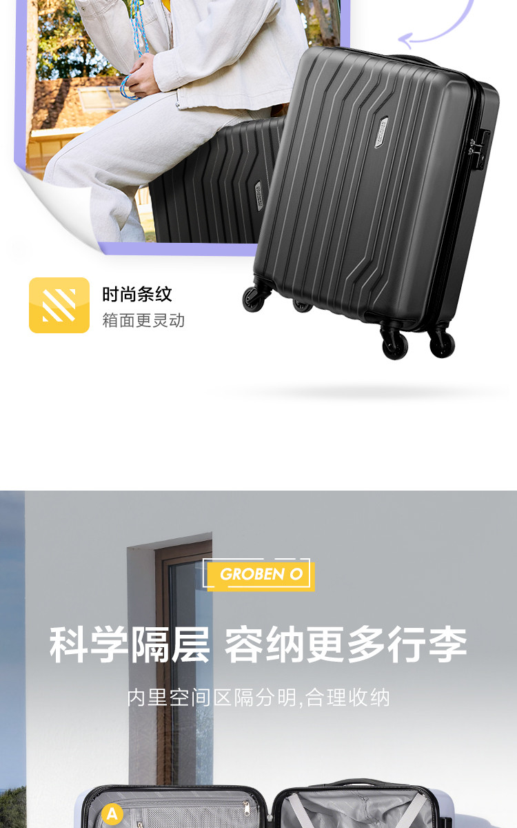 美旅 【人气时尚条纹款】超轻行李箱大容量商务万向轮密码箱男女TC5