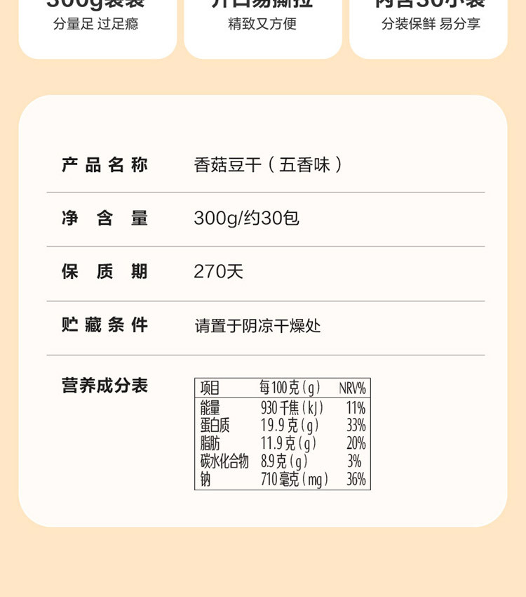 良品铺子 【约30袋】香菇豆干(五香味)300g小零食小吃休闲食品独立包装
