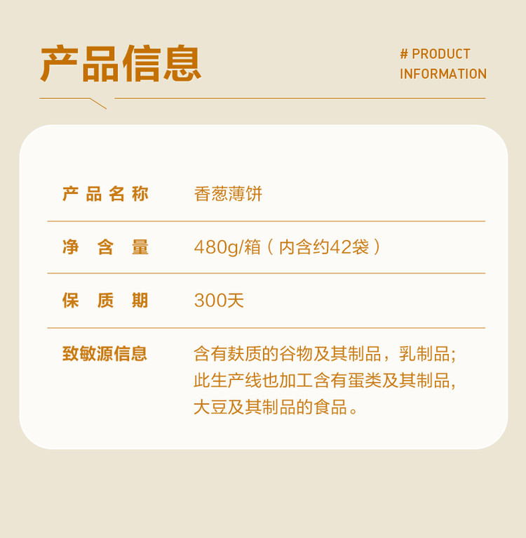 良品铺子 【约40小包】香葱薄饼480g薄脆饼干办公室零食代餐早餐