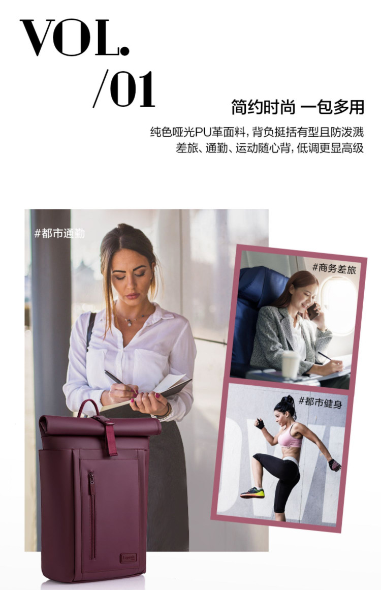 Lipault 【开学好礼】高级感卷顶式双肩包电脑包书包女大容量男式背包P90