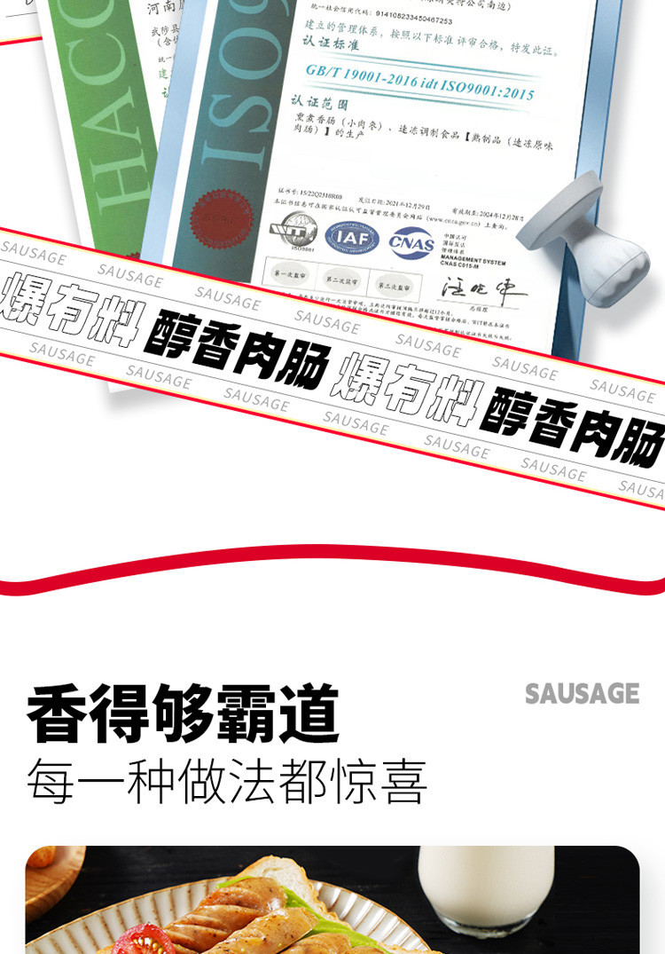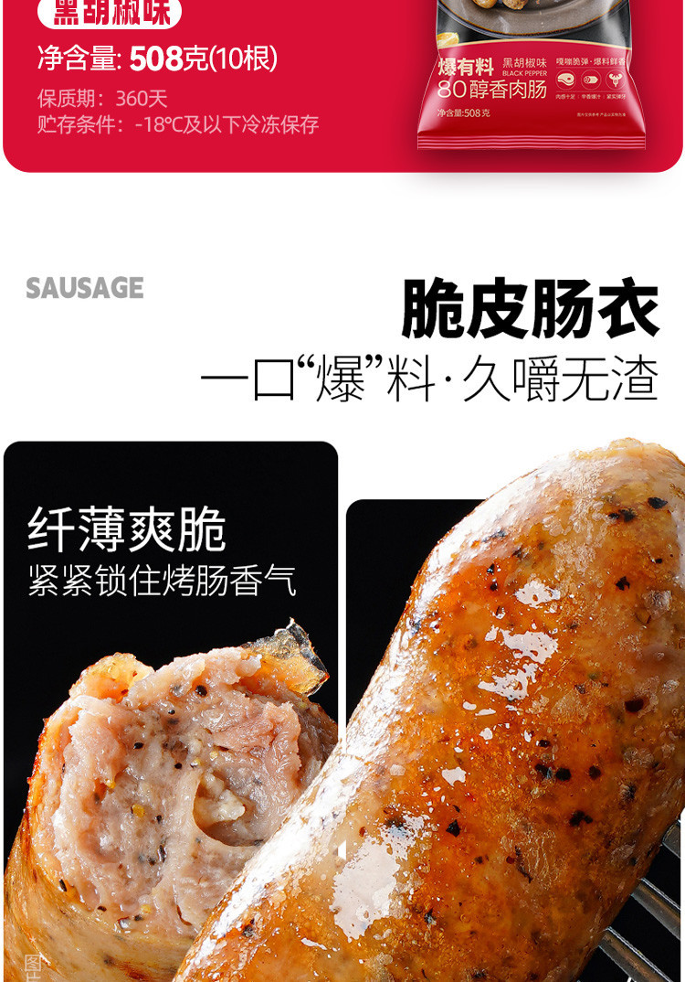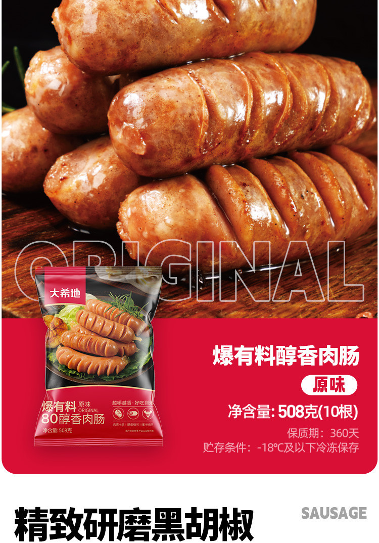 大希地 烤肠20/40根火腿肠80%含肉量台湾纯地道热狗脆皮肠肉肠儿童香肠