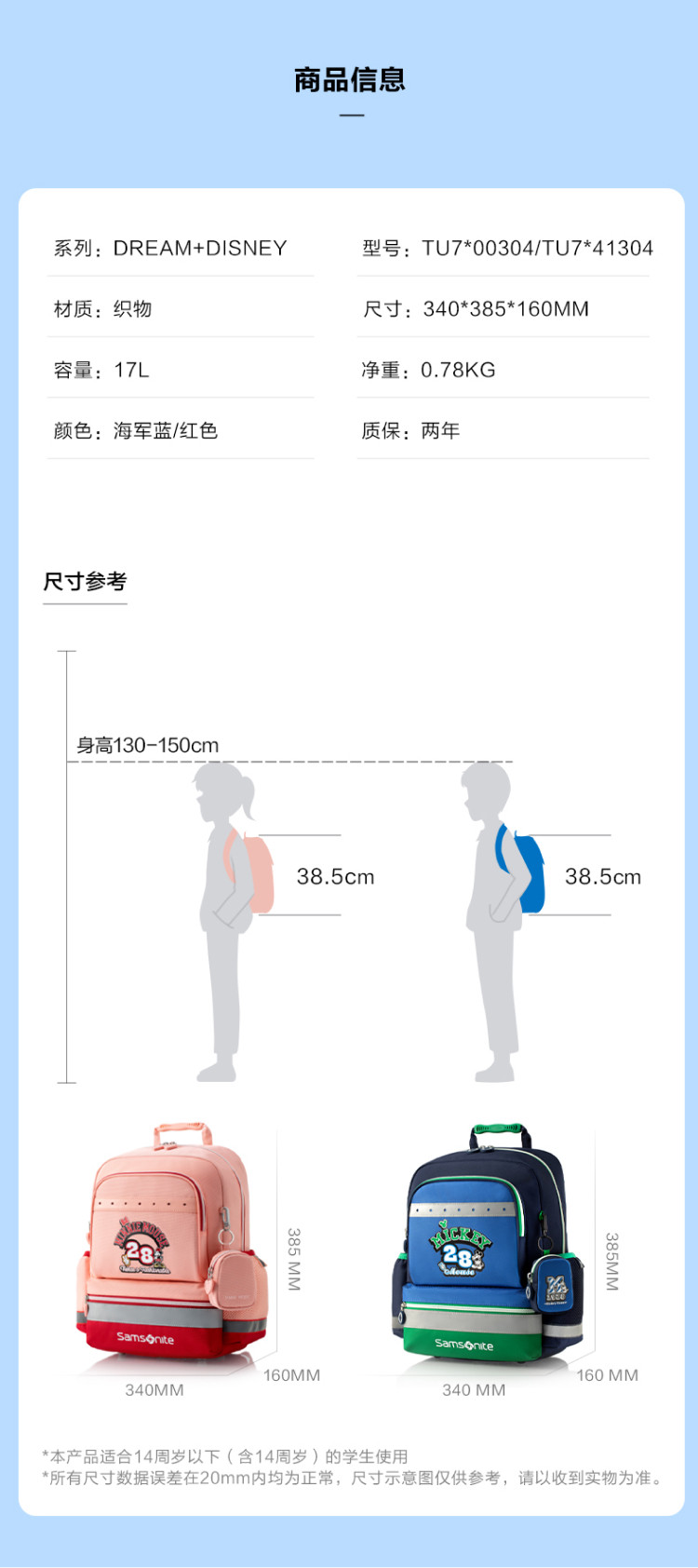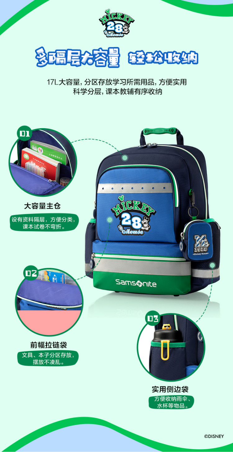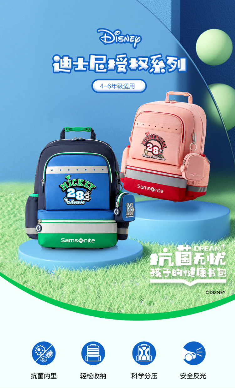 新秀丽 开学季4-6年级迪士尼学生书包男女大容量儿童背包 TU7
