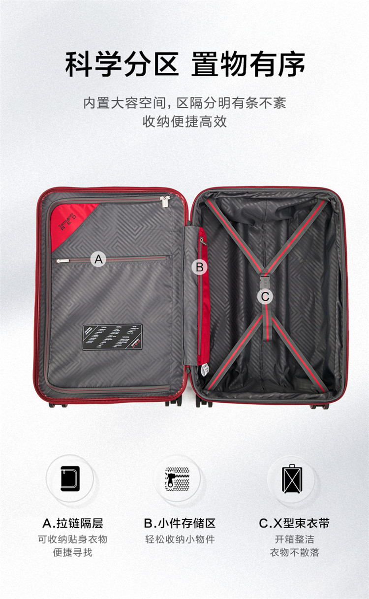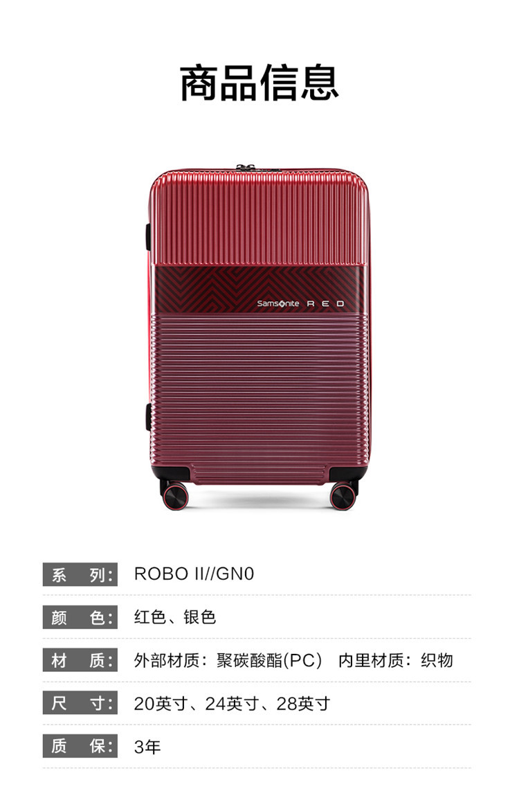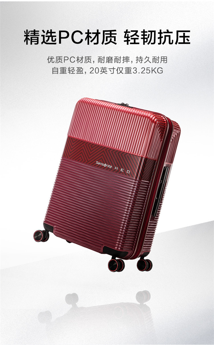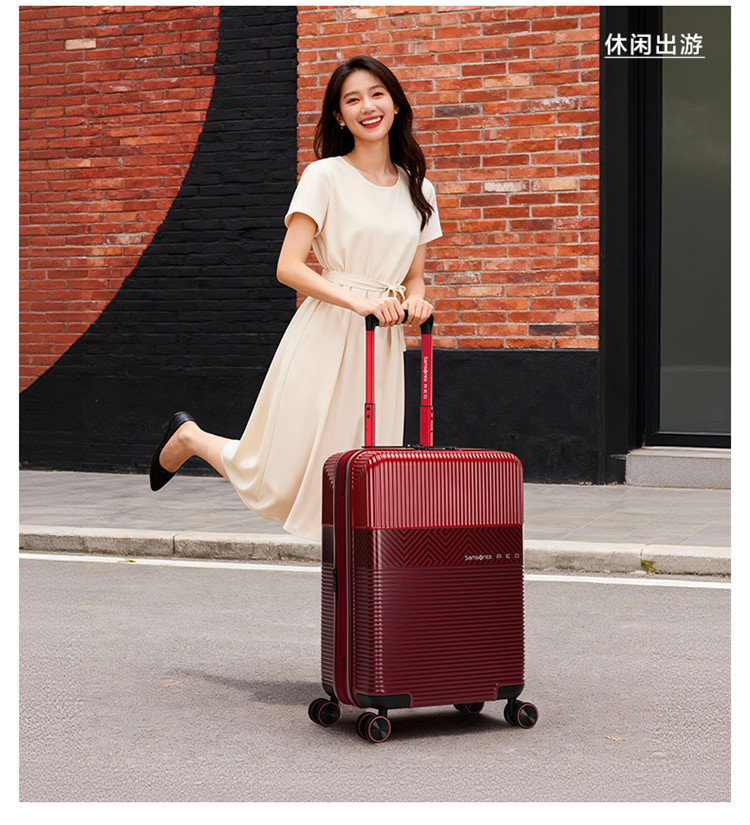 新秀丽 【时尚条纹】大容量拉杆箱男女旅行箱轻便红色旅行箱婚嫁箱 GN0