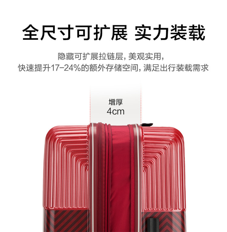 新秀丽 【时尚条纹】大容量拉杆箱男女旅行箱轻便红色旅行箱婚嫁箱 GN0