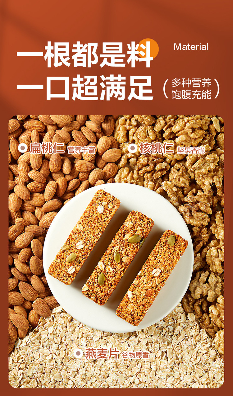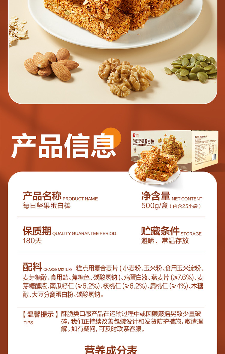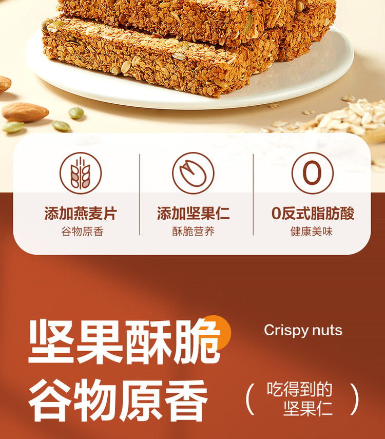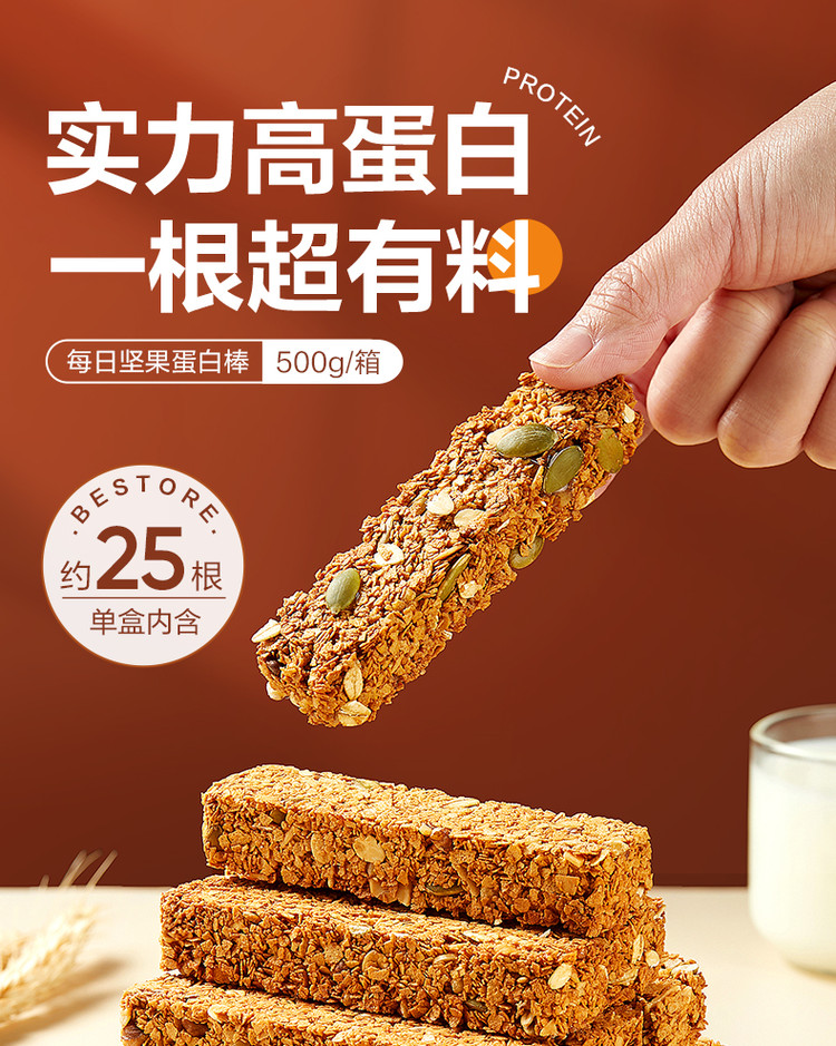 良品铺子 【25根】坚果蛋白棒燕麦棒500g实力扛饿独立包装健身休闲零食