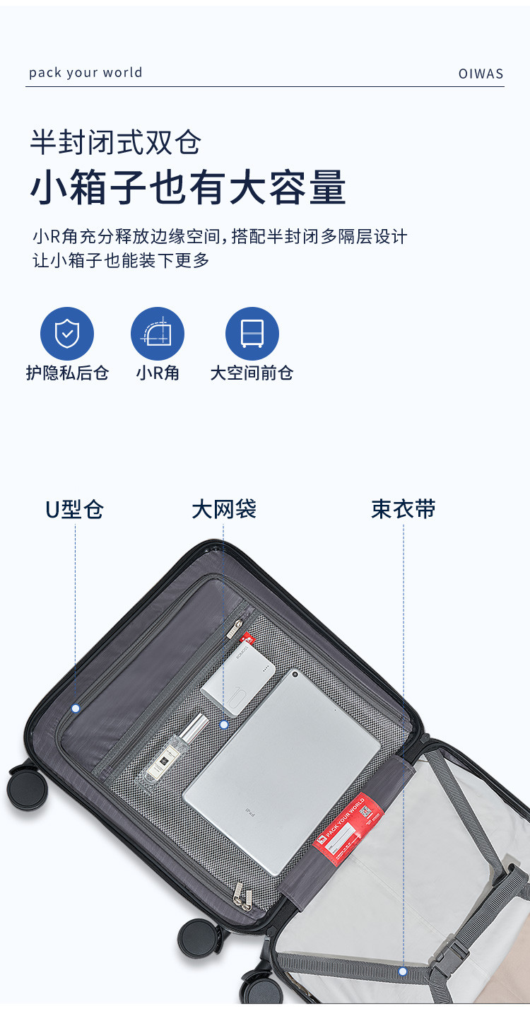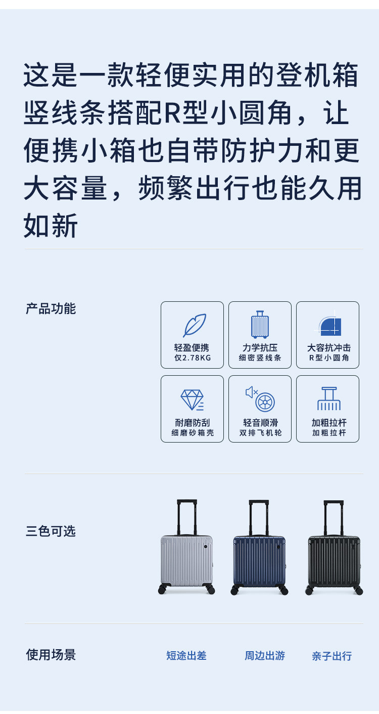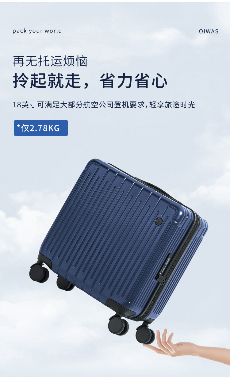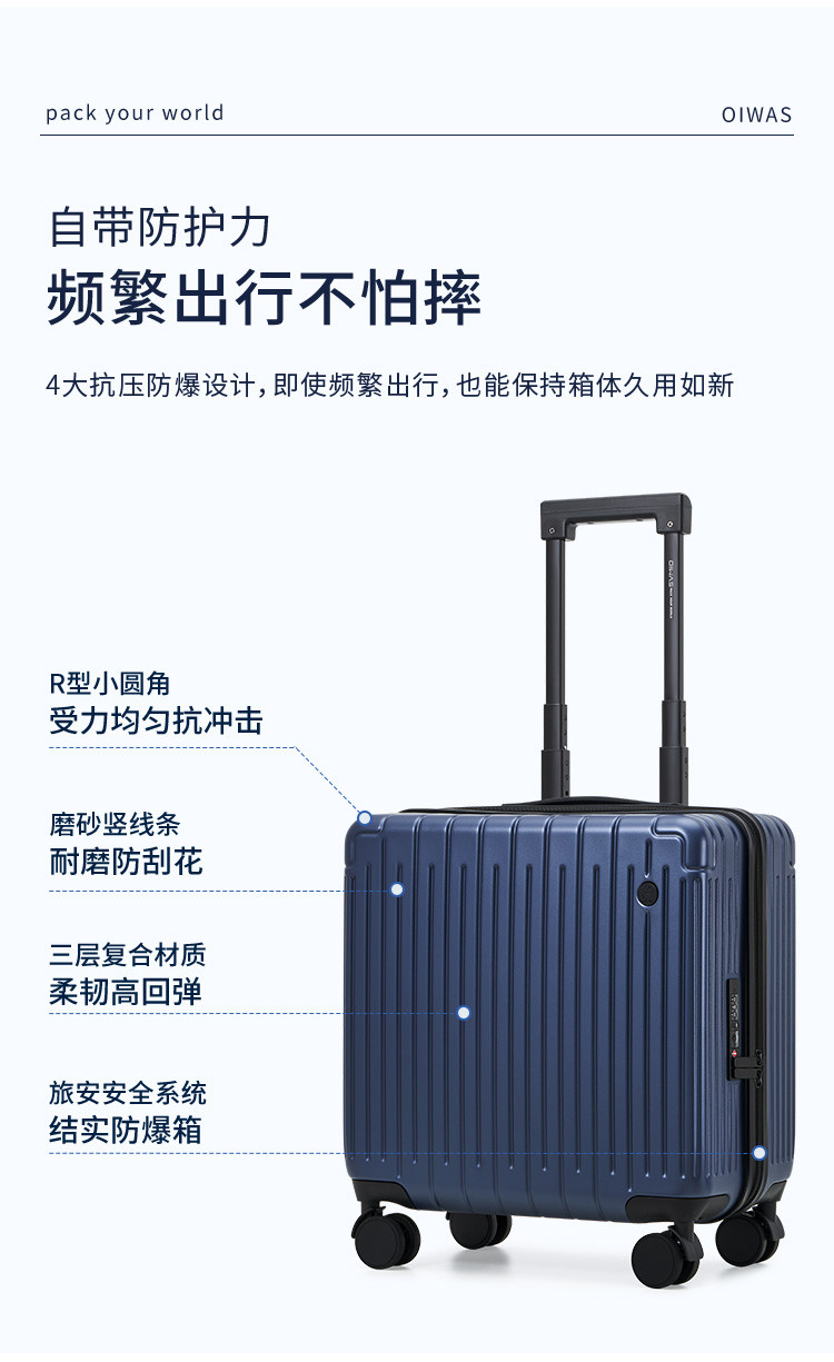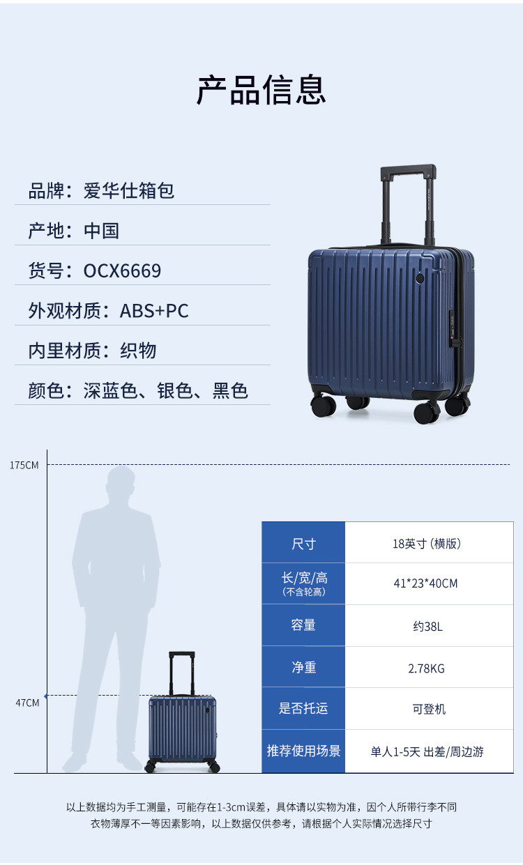 爱华仕 【登机小型箱】行李箱男女18寸短途旅行箱差旅可登机密码拉杆箱